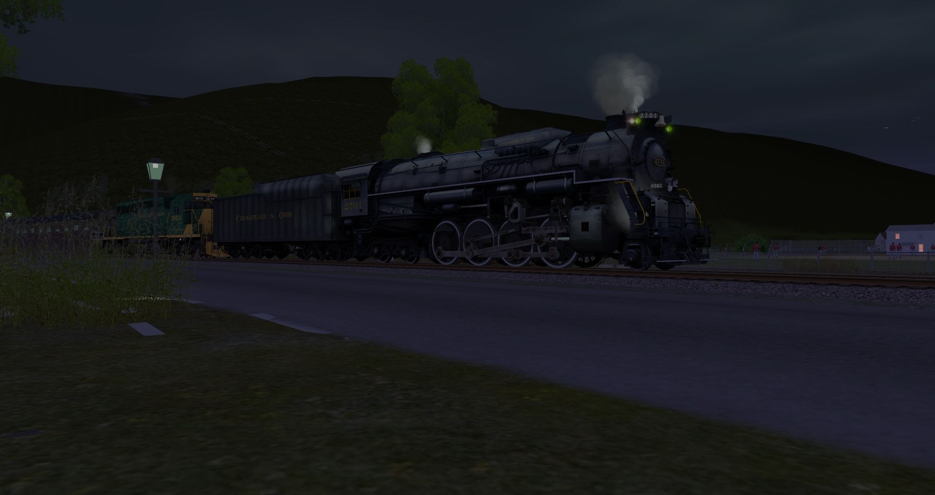 Tags: Trainz: A New Era, READING & NORTHERN, Default, C&O Kanawha K-4 Steam, RBMN SD40-2, C&O Kanawha K-4 Tender, Pullman Paul A Bert, Obs C&O George Washington