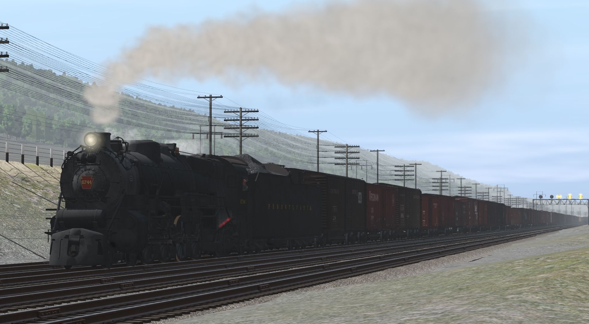 Tags: Trainz Railroad Simulator 2022, Matts Version Pittsburgh to Philadelphia and more 14, Default, Flying Cam, PRR M1b Engine, PRR M1b Tender, 40ft Boxcar CNW CMO, 40ft Boxcar VGN, 40ft Boxcar DL&W Automobile Weathered, 40ft Boxcar SP&S Wood, 40ft Boxcar BM, 36ft Boxcar N&W, 40ft Boxcar ATSF BX-27 Chief 1940, 40ft Boxcar NS Early