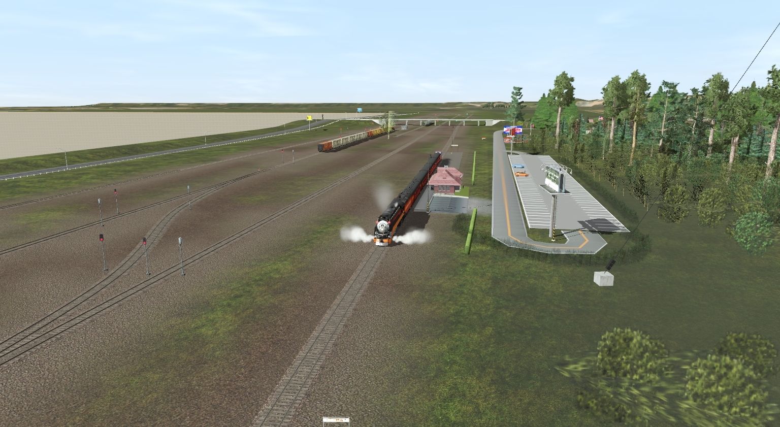 Tags: Trainz Railroad Simulator 2019, Montgomery & cole sub, Montgomery & cole sub - with ext. ai 2.2, SP GS-4 Engine Daylight, BNSF SD40-2 H3, SP GS-4 Tender Daylight Postwar, SP Coast Daylight Baggage-Chair Car, SP Coast Daylight Articulated Chair Car - ACW, SP Coast Daylight Articulated Chair Car - ACM, SP Caboose 192, MILW PCF 57' Reefer, UPFE PCF 57' Reefer white dirty, UPFE PCF 57' Reefer, Centerbeam FleXibeam™ Hybrid BNSF green DES