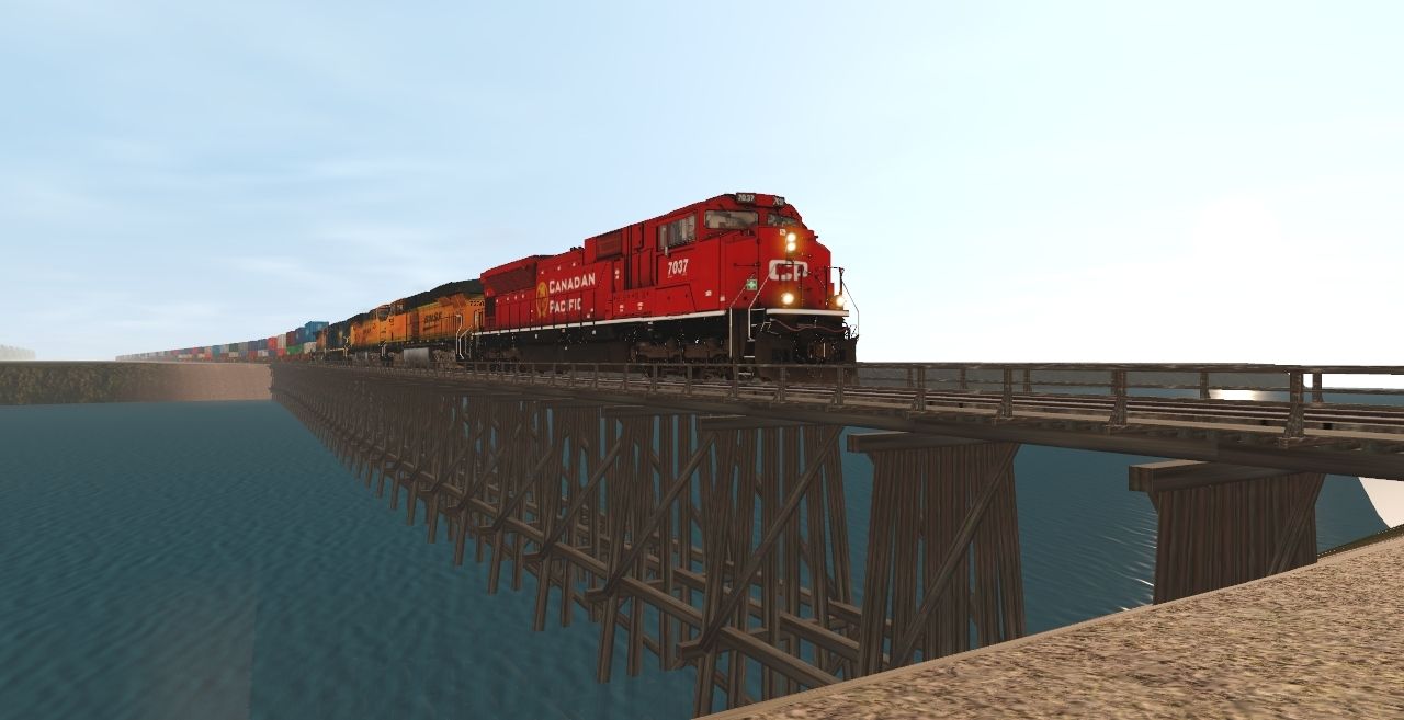 Tags: Trainz Railroad Simulator 2019, transcon, CP SD70ACU, BNSF ES44DC Dirty 1, CSX C40-8W yn3, BNSF C44-9W, TTX weathered 53 Husky Stack