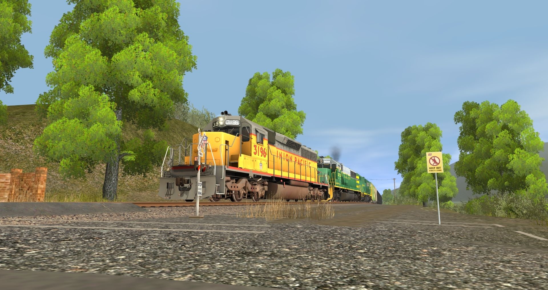 Tags: Trainz: A New Era, READING & NORTHERN, Default, UP SD40-2, RBMN SD50, SD38 RBMN #2004, 50ft Boxcar BN #244378, 50ft Boxcar BN #244626, Bethgon RBMN, Custom 40' Boxcar - REES Fishing Outfitters, Custom ACF 3 Bay - Winchester & Western, Custom 60' ACF Boxcar - San Luis Obispo