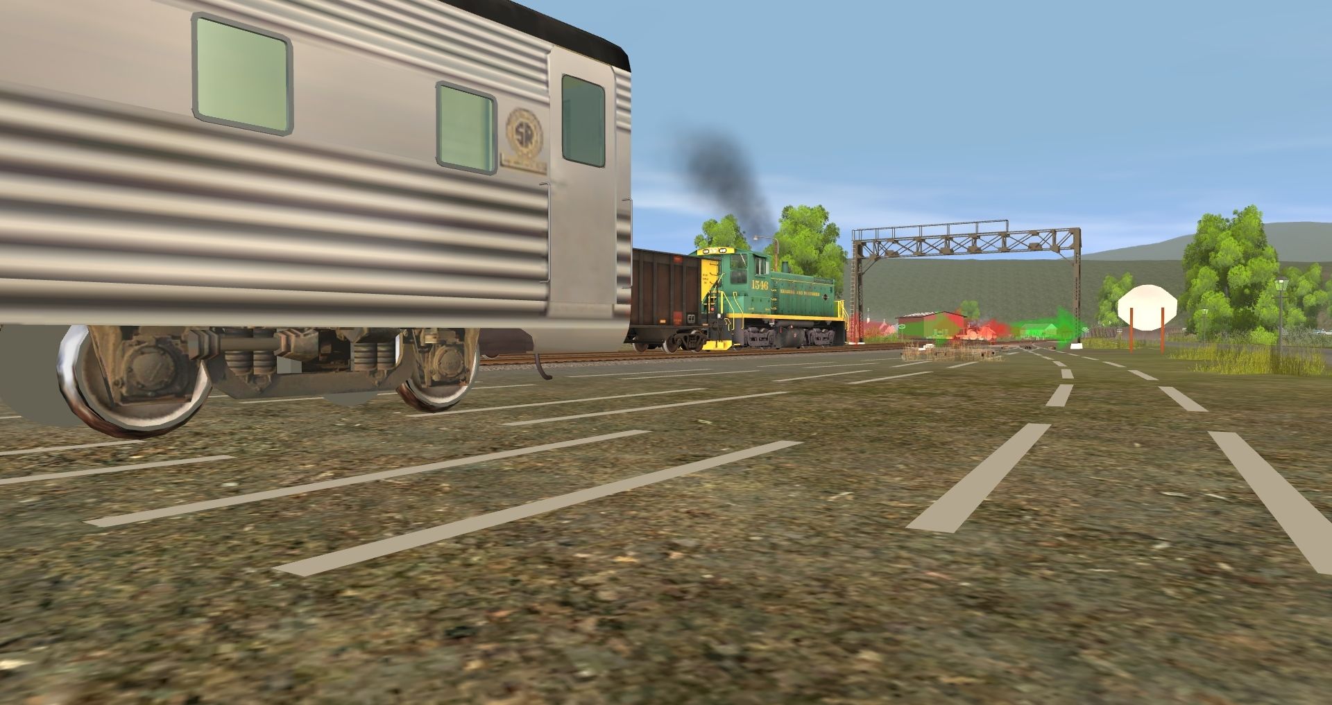 Tags: Trainz: A New Era, READING & NORTHERN, Default, RBMN SW1500 #1546, RBMN SD40-2, Southern Streamlined Coach, PPLX 100 Ton Hopper, SLRG Budd Dome Prairie View, Bethgon RBMN