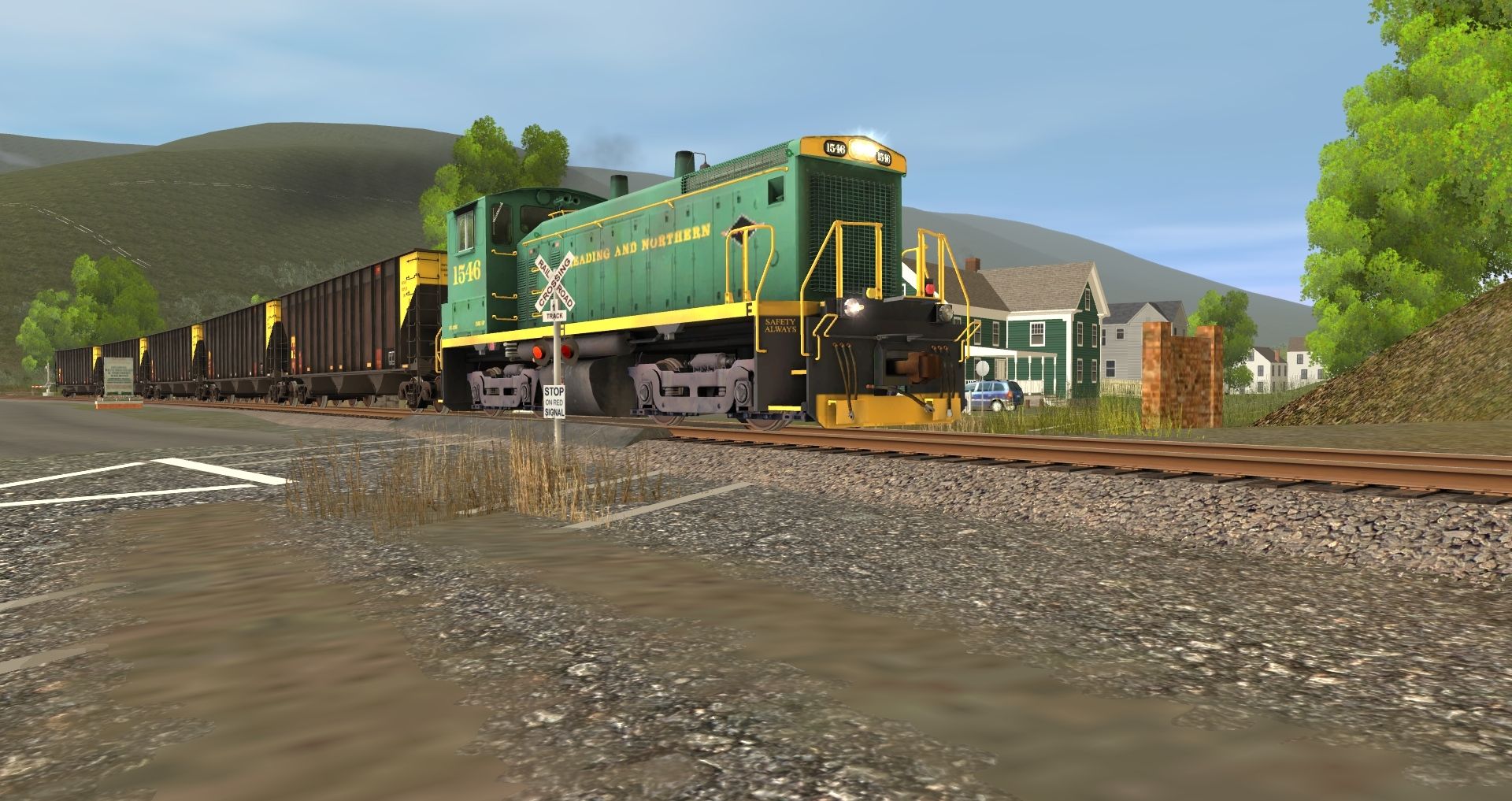 Posted by: Tomr0608 | Posted:2023-02-12 13:46:52 Caption: Tags: Trainz: A New Era, READING & NORTHERN, Default, RBMN SW1500 #1546, RBMN SD40-2, PPLX 100 Ton Hopper, Bethgon RBMN