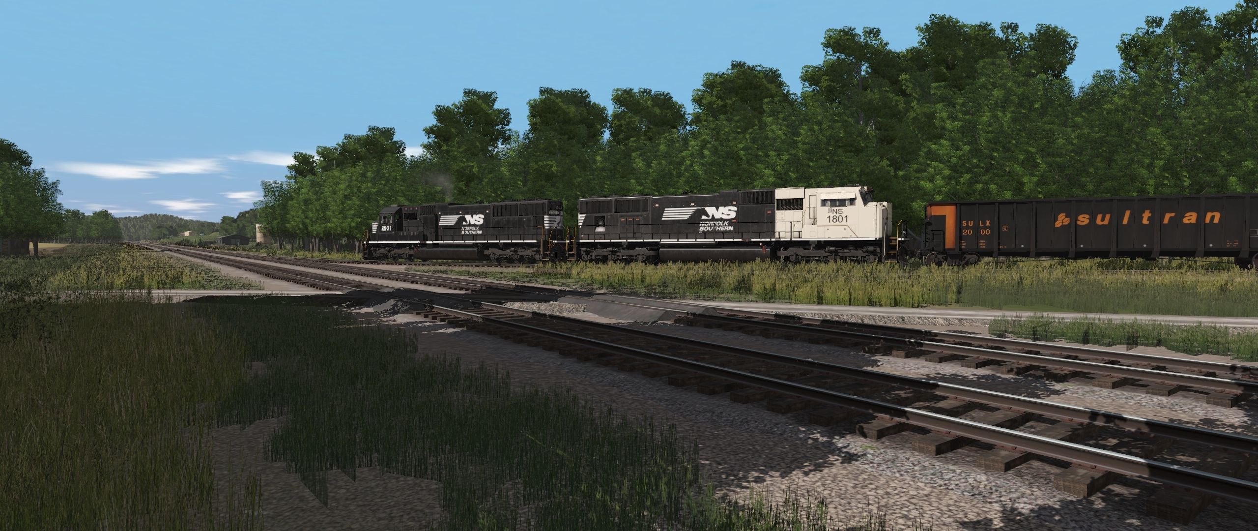 Tags: Trainz Railroad Simulator 2019, Southern Railway Old Fort Loops, Default, NS SD70 HH Order 1, NS SD70ACC Primer #1801, Sultran 4000cf Rotary Gondola, FRED BNSF