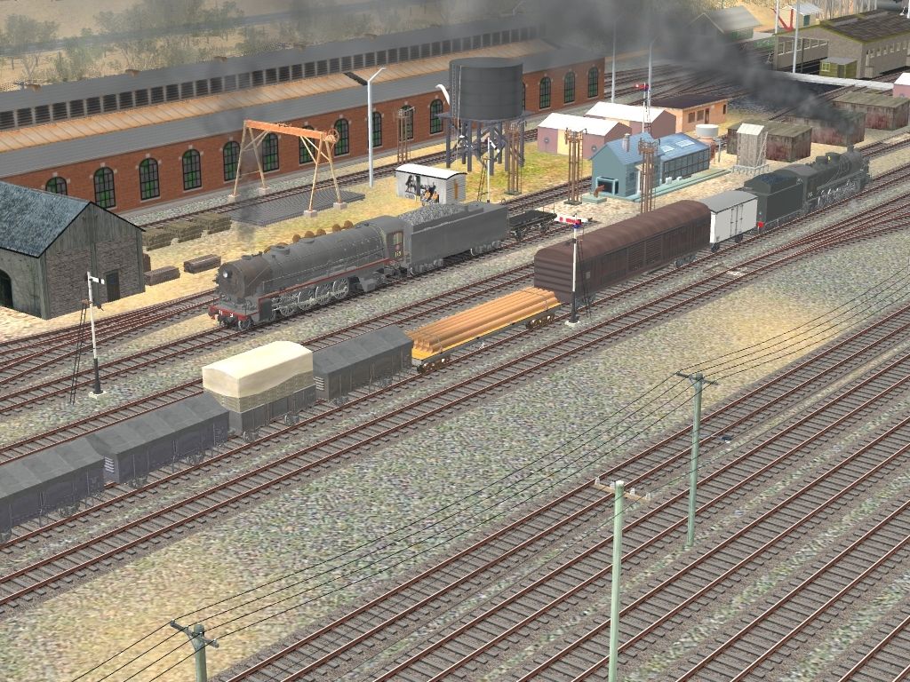 Tags: Trainz: A New Era, NSWGR Albury Station & Yards - Autosave, NSWGR Albury Station & Yards in Steam Era, NSWGR D57 class Locomotive, NSWGR 5906 loco (coal), NSWGR D50 class Locomotive, NSWGR C3237 Loco, NSWGR C30 class Loco (tank), NSWGR RU wheat hopper, NSWGR IFW Well Wagon - 20 ft race container, NSWGR WS wheat hopper, NSWGR TRC Refrigerated Van 1955, NSWGR CW 4-wheel cattle wagon 1948 hook couplers, NSWGR CW Cattle Wagon