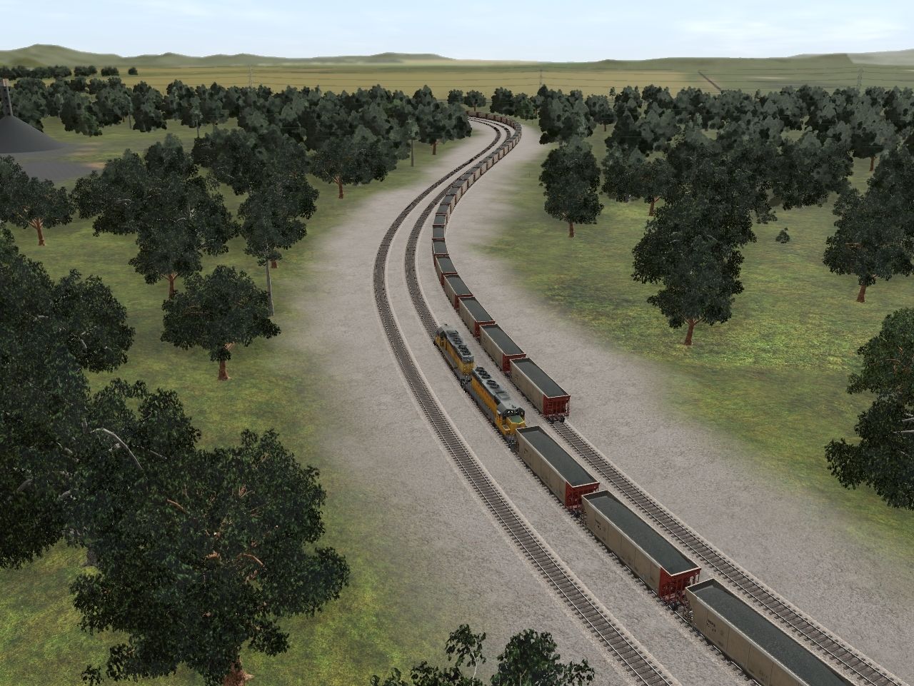 Caption: INdustrial Mayhem - Coal Run - 10. Passing coal hoppers on the "wrong" track