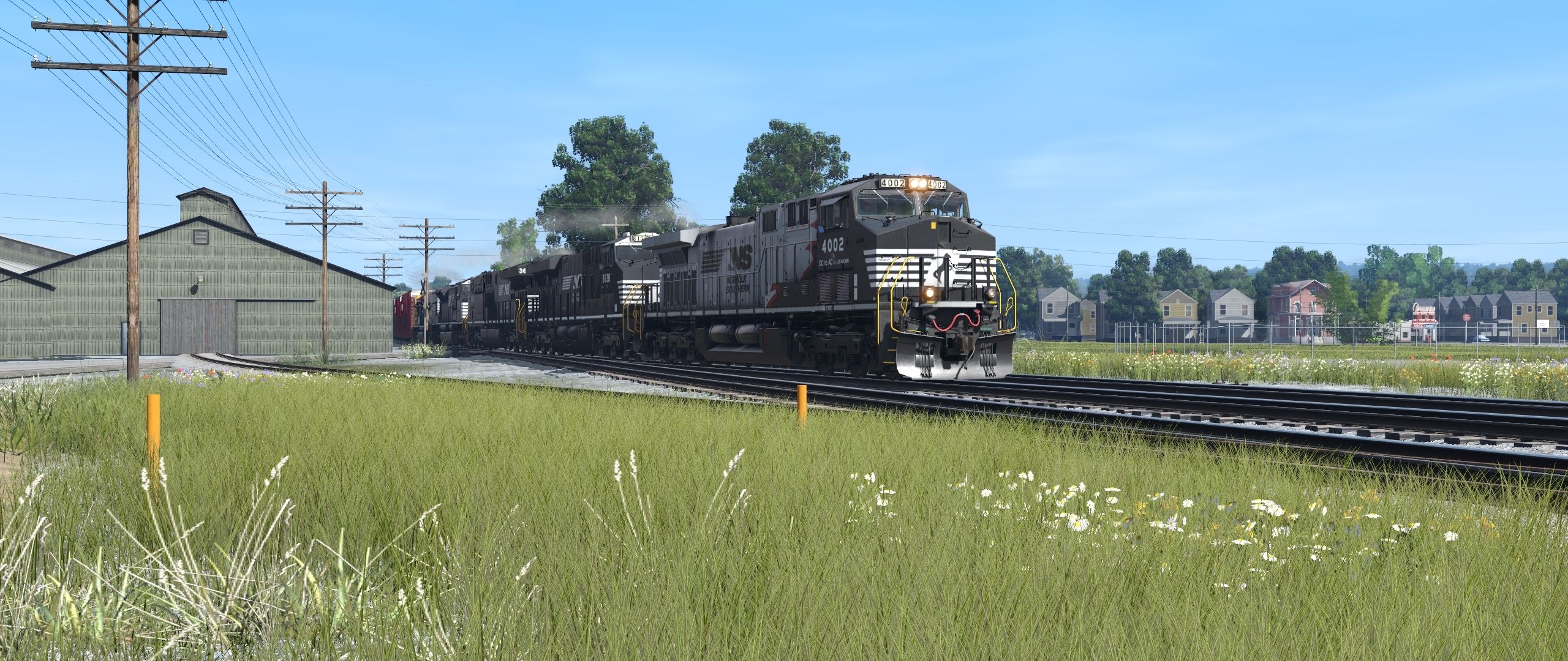 Tags: Trainz Railroad Simulator 2022, EL Mahoning Divison 9-07-23 pre beta ev, Default, NS AC44C6M Red Mane, NS ES44AC ph2e, NS ET44AC, NS SD70ACU, NS SD70ACC #1800, NS 60ft Boxcar PS (Autoparts), NW 60ft Boxcar PS [Black] (Autoparts), NS ACF Centerflow 3 Bay long hatch, NSCX ACF Centerflow 4 Bay Dirty, NAHX Trinity 3 Bay Hopper #475021, MWGX ACF Centerflow 4 Bay Dirty