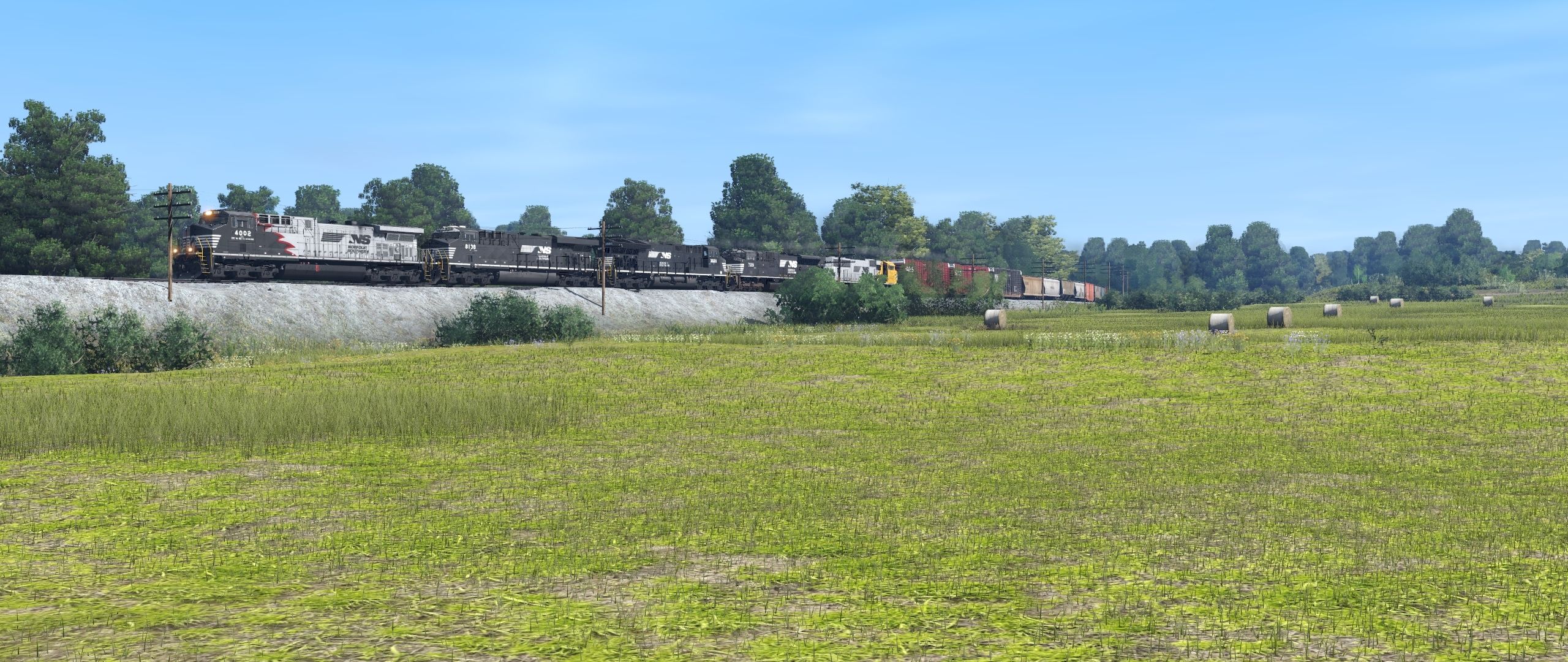 Tags: Trainz Railroad Simulator 2022, EL Mahoning Divison 9-07-23 pre beta ev, Default, NS AC44C6M Red Mane, NS ES44AC ph2e, NS ET44AC, NS SD70ACU, NS SD70ACC #1800, NS 60ft Boxcar PS (Autoparts), NW 60ft Boxcar PS [Black] (Autoparts), NS ACF Centerflow 3 Bay long hatch, NSCX ACF Centerflow 4 Bay Dirty, NAHX Trinity 3 Bay Hopper #475021, MWGX ACF Centerflow 4 Bay Dirty
