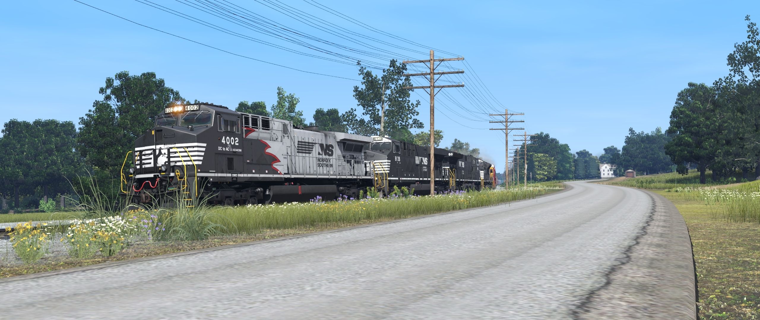 Tags: Trainz Railroad Simulator 2022, EL Mahoning Divison 9-07-23 pre beta ev, Default, NS AC44C6M Red Mane, NS ES44AC ph2e, NS ET44AC, NS SD70ACU, NS SD70ACC #1800, NS 60ft Boxcar PS (Autoparts), NW 60ft Boxcar PS [Black] (Autoparts), NS ACF Centerflow 3 Bay long hatch, NSCX ACF Centerflow 4 Bay Dirty, NAHX Trinity 3 Bay Hopper #475021, MWGX ACF Centerflow 4 Bay Dirty