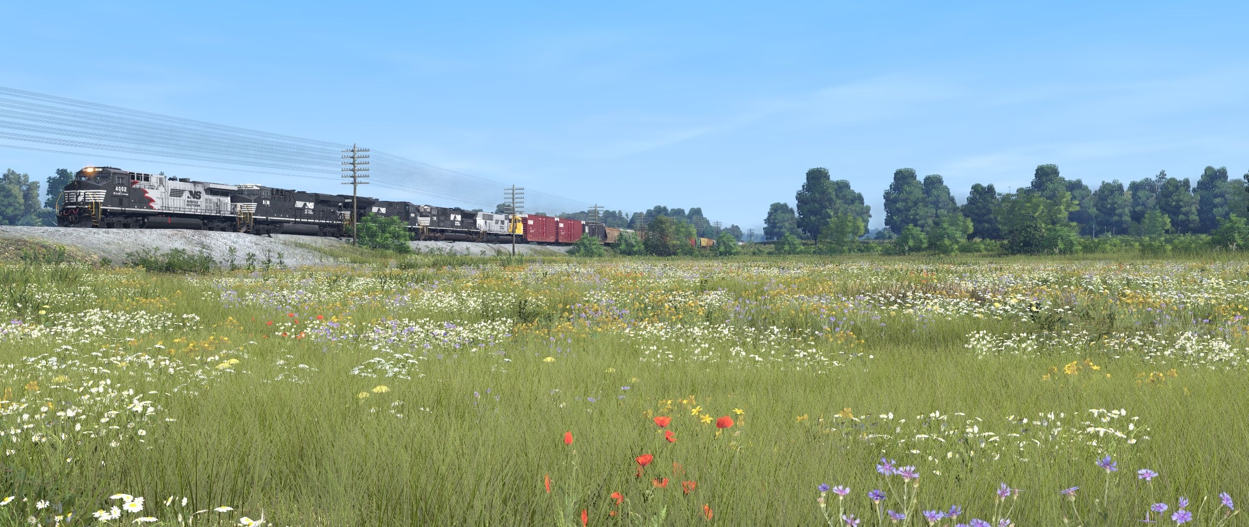 Tags: Trainz Railroad Simulator 2022, EL Mahoning Divison 9-07-23 pre beta ev, Default, NS AC44C6M Red Mane, NS ES44AC ph2e, NS ET44AC, NS SD70ACU, NS SD70ACC #1800, NS 60ft Boxcar PS (Autoparts), NW 60ft Boxcar PS [Black] (Autoparts), NS ACF Centerflow 3 Bay long hatch, NSCX ACF Centerflow 4 Bay Dirty, NAHX Trinity 3 Bay Hopper #475021, MWGX ACF Centerflow 4 Bay Dirty