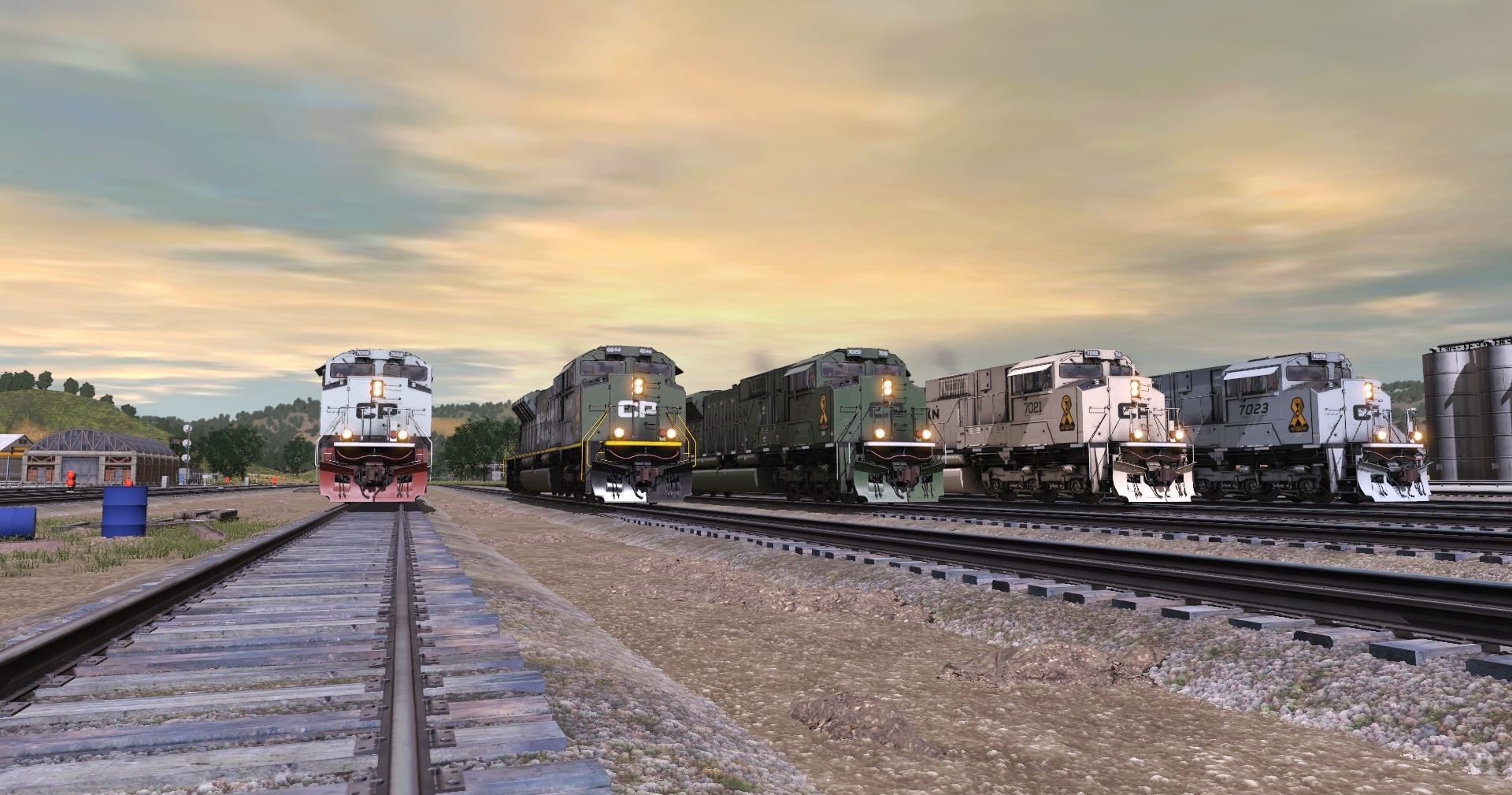 Tags: Trainz Railroad Simulator 2022, Kickstarter County 2 (TRS22), Default, CP SD70ACU #7020, CP SD70ACU #6644, CP SD70ACU #7021, CP SD70ACU #7022, CP SD70ACU #7023, NS SD70ACC Primer, NS SD70ACU Primer (ex-UP)