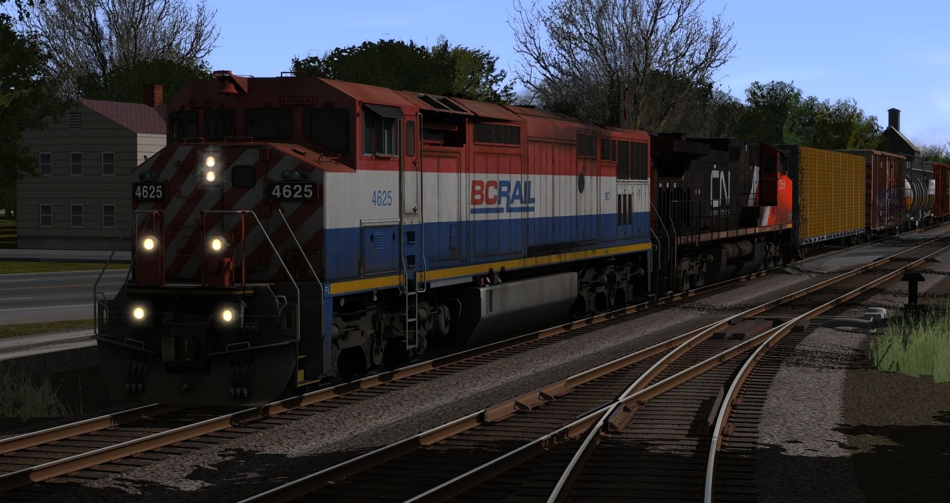 Tags: Trainz: A New Era, Durand MI TANE, Flying Cam, BCOL C40-8M 4600b -dirty ver.-, CN C44-9W 2523-2602, 73ft Centerbeam CP #319061, 60ft HC Boxcar BNSF Ver1, Tank Car Cryogenic Airco DES, 73ft Centerbeam CSXT, 60ft HC Boxcar CSX Ver1, 60ft HC Boxcar TTX Ver1, 60ft HC Boxcar TTX Ver2, 60ft HC Boxcar CP Ver2