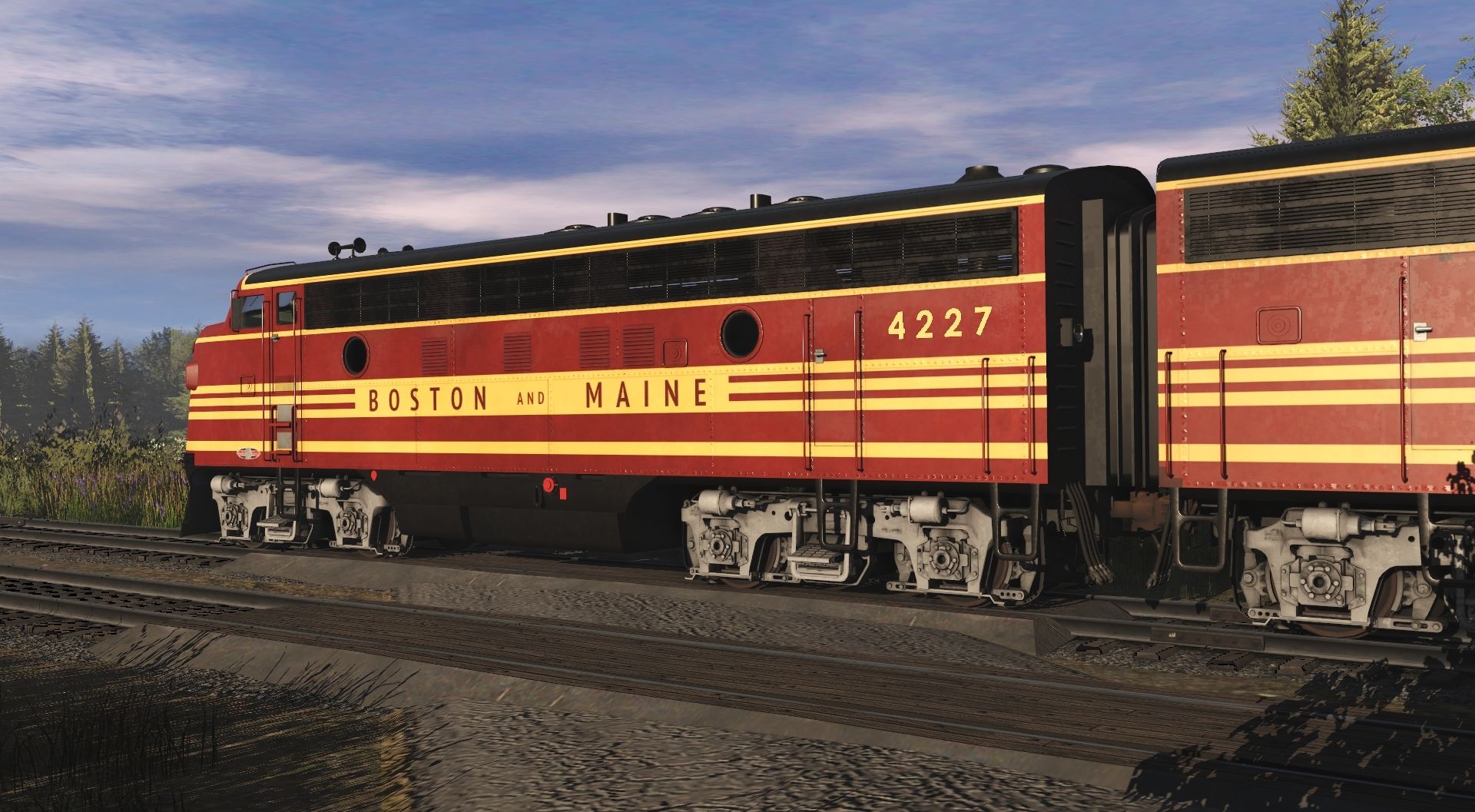 Tags: Trainz Railroad Simulator 2022, B&M Dover NH, Default, Flying Cam, B&M F3B 1952, B&M F3A 1952, 50' Boxcar DL&W Early, 50' Boxcar LV Early (end doors), 40ft Boxcar SOU, USRA 55T H B&O Mid, 38' X-3 Tank Car SHPX, 40ft Boxcar B&O Wagontop Postwar Flat Doors, 40ft Boxcar SSW 1947, 40ft Boxcar Fowler D&H