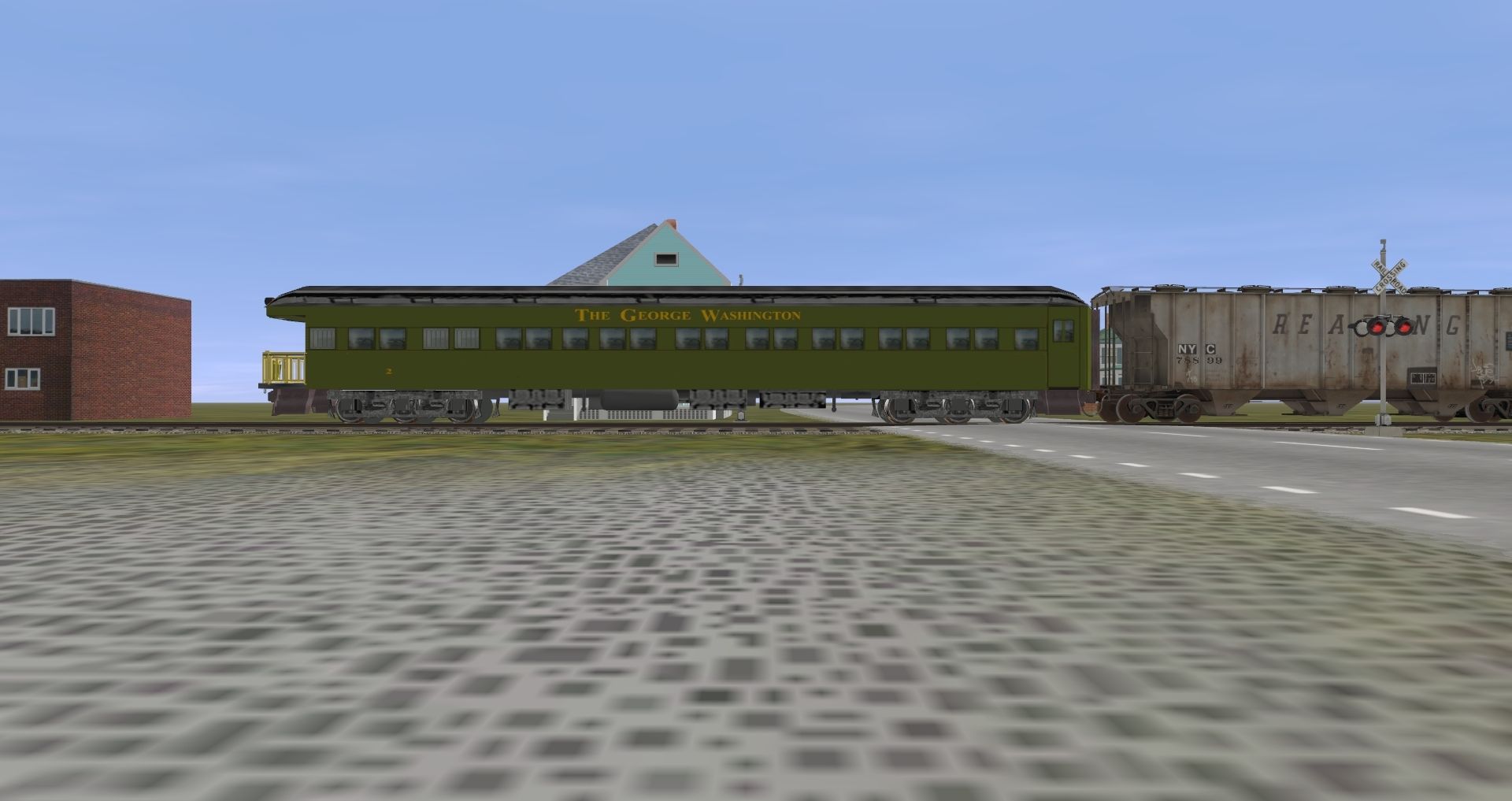 Posted by: Tomr0608 | Posted:2023-02-15 01:47:56 Caption: Tags: Trainz: A New Era, Leesport (Beta), Default, NS GP38-2, Obs C&O George Washington, NYC ex-RDG LO 3510