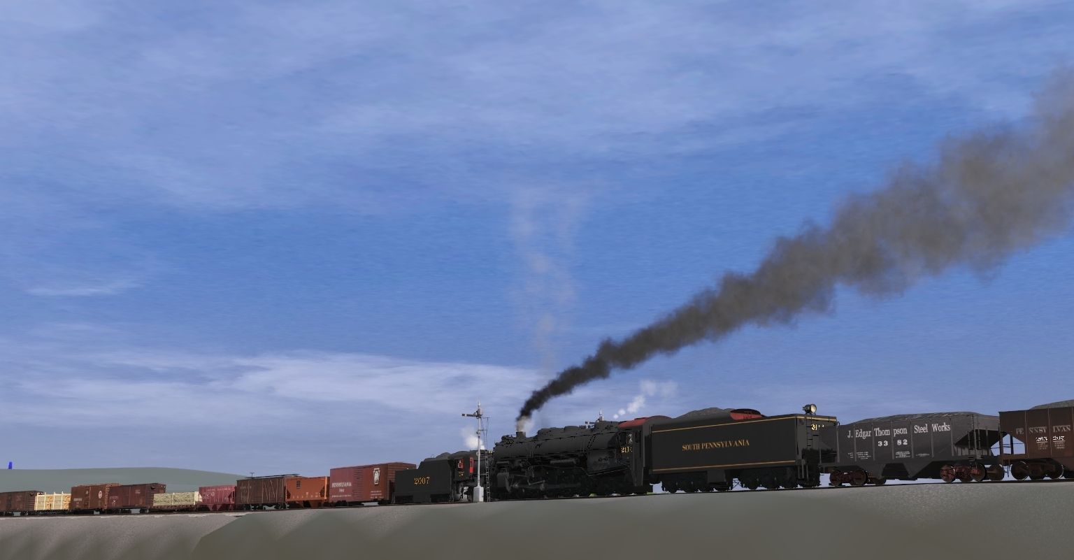 Tags: Trainz Railroad Simulator 2019, Laurel Highlands Fictional - 1930s, Default, South Penn U1 Tuscanora Engine, South Penn Q-1 Quemahoning, Coal 2 Bay Hopper J Edgar Thompson Steel Works #MFX, South Penn U1 Tender, Coal 2 Bay Hopper Montour #MFX, South Penn Q-1 Quemahoning Tender, Coal 2 Bay Hopper BR&P #MFX, 40ft Boxcar PRR 76642, Coal 2 Bay Hopper Buffalo & Susquehanna #MFX, HM Buffalo Rochester & Pittsburgh 41005 LARS, 40ft Boxcar Fowler Monon