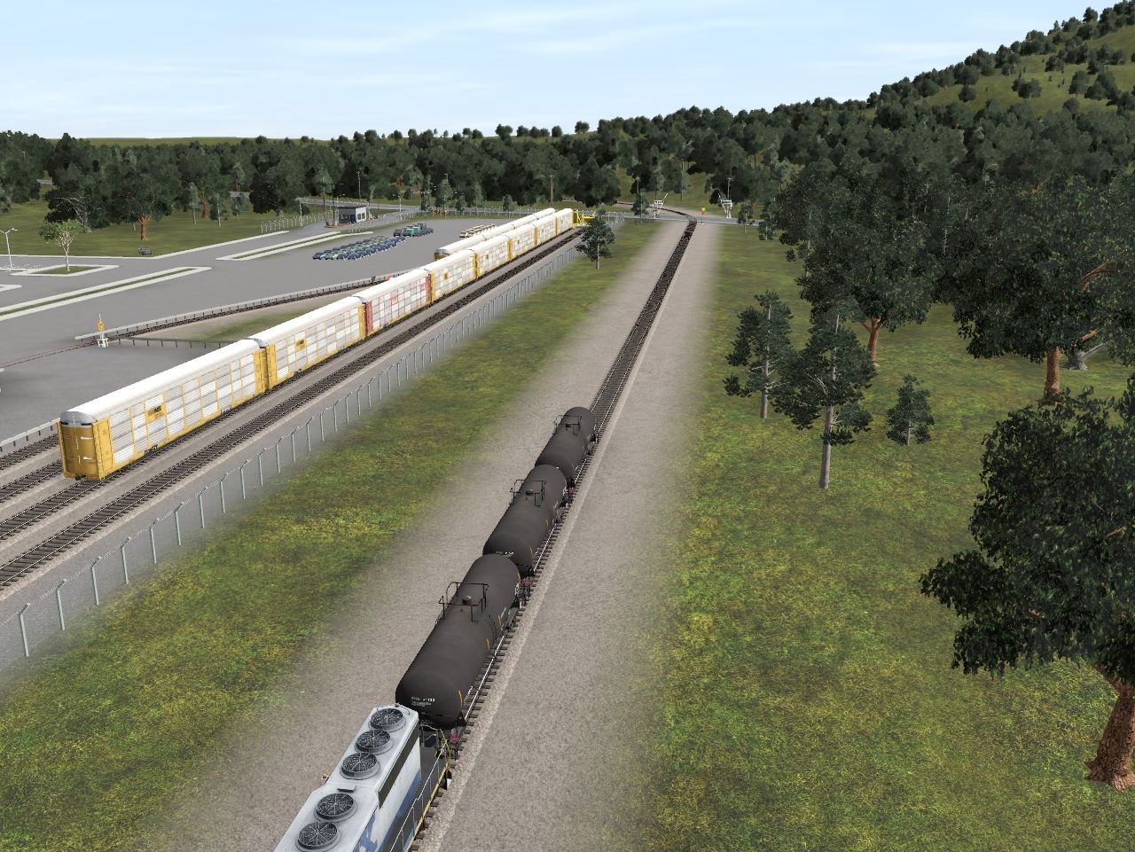 Tags: Trainz Railroad Simulator 2019, Industrial Mayhem, Industrial Mayhem Industry Tour, CSX SD40-2 YN2, BFRD 20800 gal Tank Car (Diesel Fuel), 89Ft Autorack NS, 89Ft Autorack CR, 89Ft Autorack CSX, 89Ft Autorack CN, 89Ft Autorack GT