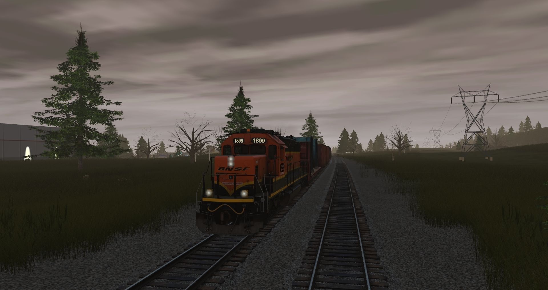 Tags: Trainz Railroad Simulator 2019, UMR2022 p1, BNSF SD40-2 1895-1909 H3 RCL TS19 1, BNSF 60Ft.9In. woodchip gondola 00's dirty, BNSF 62Ft. Bulkhead, BNSF 60ft flatcar