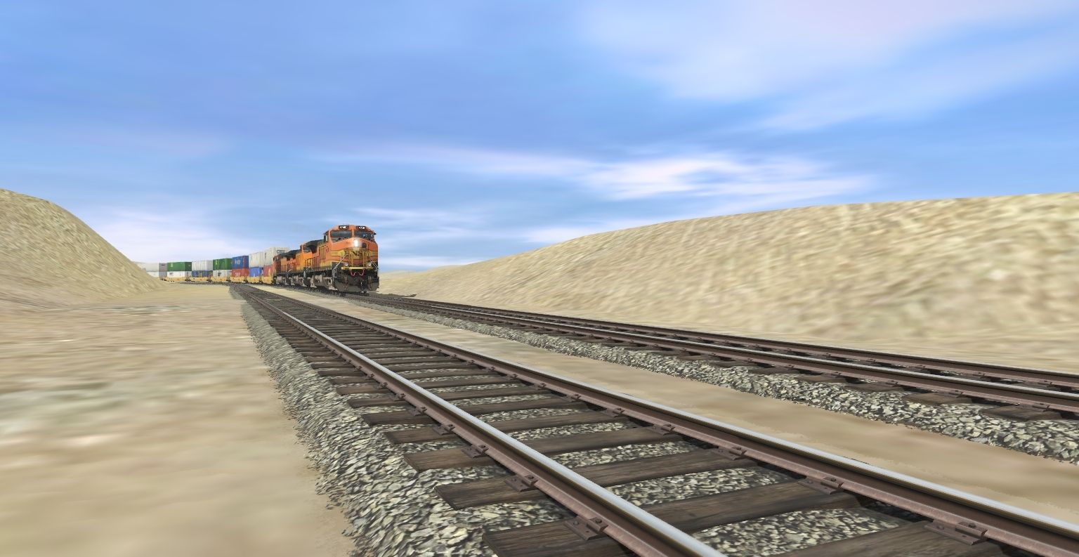 Posted by: GBallman | Posted:2023-02-16 21:45:32 Caption: Tags: Trainz Railroad Simulator 2019, City and Country USA Upgraded, Default, BNSF C44-9W h2, AP53 TTX Wellcar