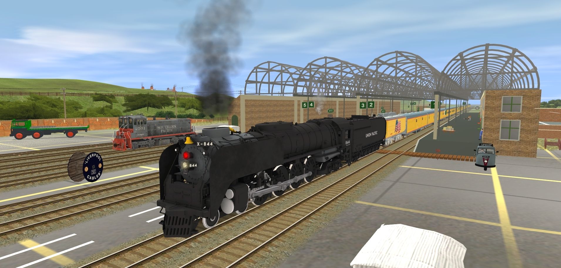 Tags: Trainz: A New Era, Knapford Final Version, UPRR FEF-3 844, SP SW1500, UPRR FEF Black oil tender, UP Auxiliary Tender 809 (Jim Adams) SR, UP_Baggage_5772, UP_Baggage_Dormitory_6002, UP_RPO_5900, UP_Coach_5450, UP_Coach_5451, UP_Coach_5456, UP_Coach_5466