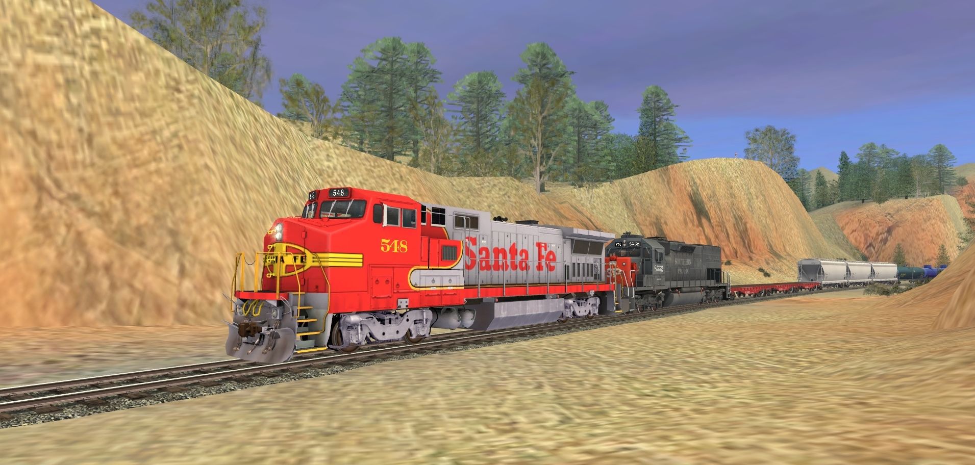 Tags: Trainz: A New Era, Intro to Steam (Modern Day) V2, Intro to Steam (Modern Day) V2 - Default, ATSF B40-8W, SP SD40T-2, PRR FM flat car, JRPX ACF Centerflow 4 Bay round hatch, Oil Tanker UTLX 60 Ft, MN MOW GATX, Penn Salt GATX Tanker, Log Wagon Short Knuckle, Mill Gondola 52' Railgon, Mill Gondola 52' WL&G (5700 series), 40ft Boxcar ACL 01