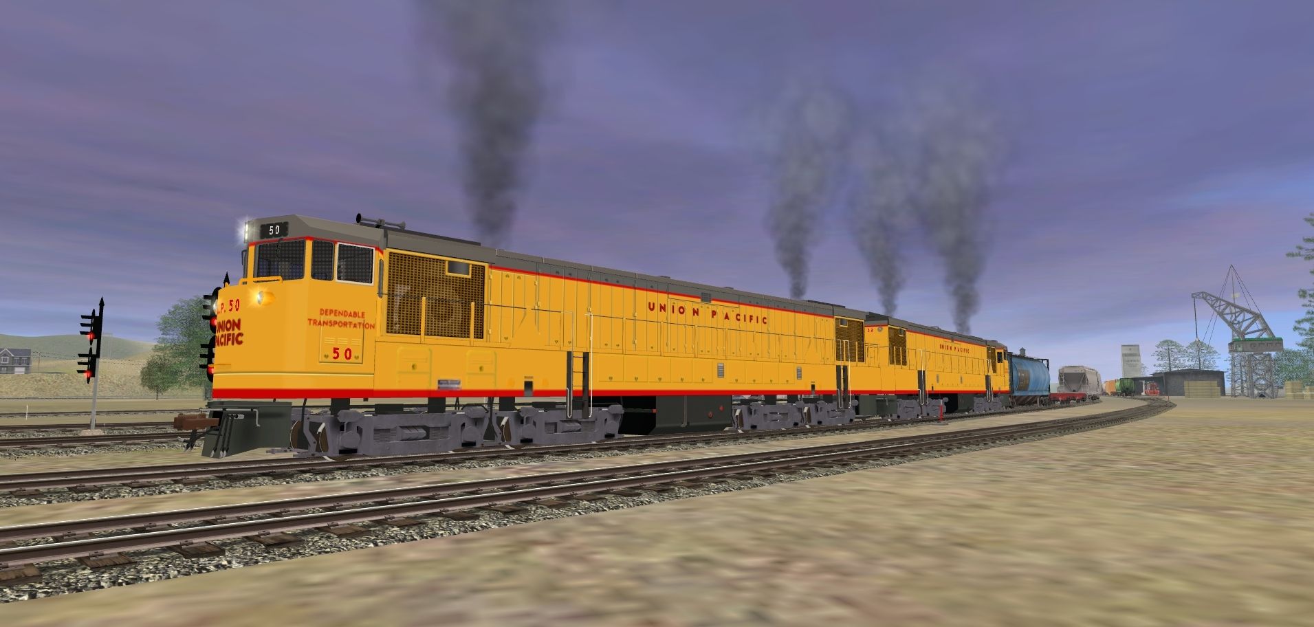 Tags: Trainz: A New Era, Intro to Steam (Modern Day) V2, Intro to Steam (Modern Day) V2 - Default, General Electric U50 Union Pacific, ATSF C30-7, SP SW1500, Reading B8a 0-6-0 Camelback, PRR FM flat car, HB Cylindrical Hopper, JRPX ACF Centerflow 4 Bay round hatch, Oil Tanker UTLX 60 Ft, MN MOW GATX, Penn Salt GATX Tanker, GBCX Cylindrical Hopper