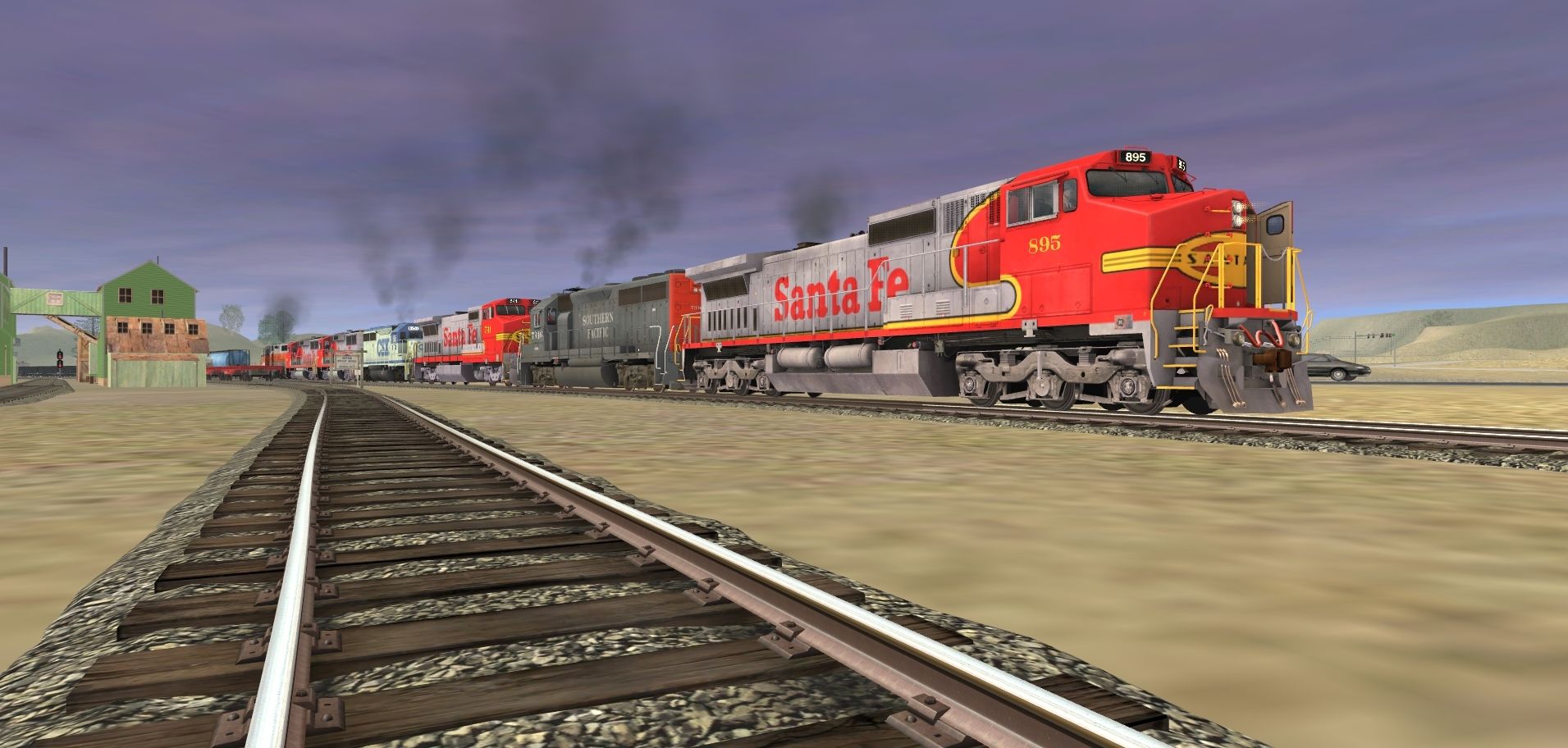 Tags: Trainz: A New Era, Intro to Steam (Modern Day) V2, Intro to Steam (Modern Day) V2 - Default, ATSF C40-8W, SP GP40-2, ATSF B40-8W, CSX GP40-2, ATSF GP60M, WP GP35 Zephyr 2, ATSF C30-7, SP SW1500, Log Wagon, HB Cylindrical Hopper, PRR FM flat car