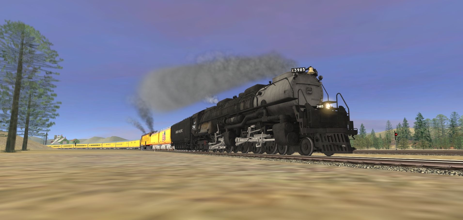 Tags: Trainz: A New Era, Intro to Steam (Modern Day) V2, Intro to Steam (Modern Day) V2 - Default, UP JMB Challenger Weathered, General Electric U50 Union Pacific, UP JMB Centipede tender oil Clean, UP Auxiliary Tender 809 (Jim Adams) SR, UP Auxiliary Tender 814 (Joe Jordan) SR, UP_Baggage_5772, UP_Baggage_Dormitory_6002, UP_RPO_5900, UP_Coach_5450, UP_Coach_5451, UP_Coach_5456