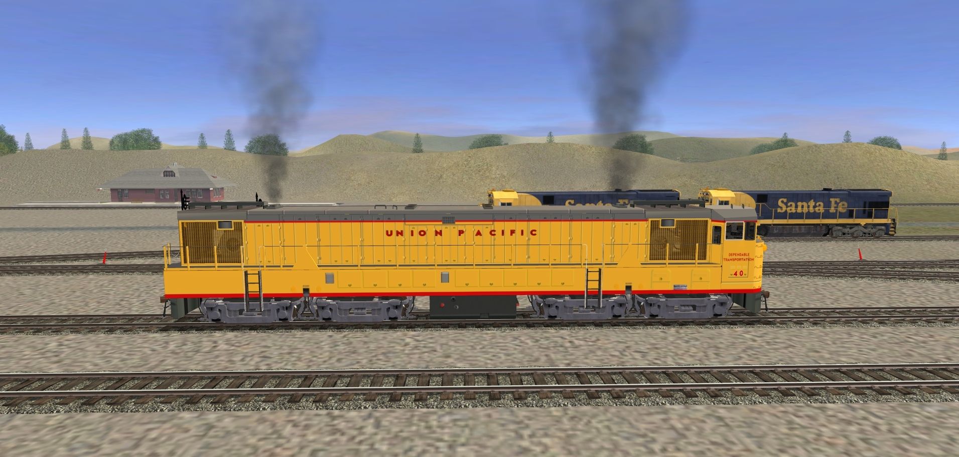 Tags: Trainz: A New Era, Intro to Steam (Modern Day) V2, Intro to Steam (Modern Day) V2 - Default, SP SW1500, General Electric U50 Union Pacific, ATSF C30-7, Reading B8a 0-6-0 Camelback, 40ft Boxcar WRA 01, 40ft Boxcar WM 01, PRR FM flat car, 40ft C&O AAR boxcar, MWGX (dirty) Cylindrical Hopper, 40ft Boxcar WM #29287, IC Airslide Hopper