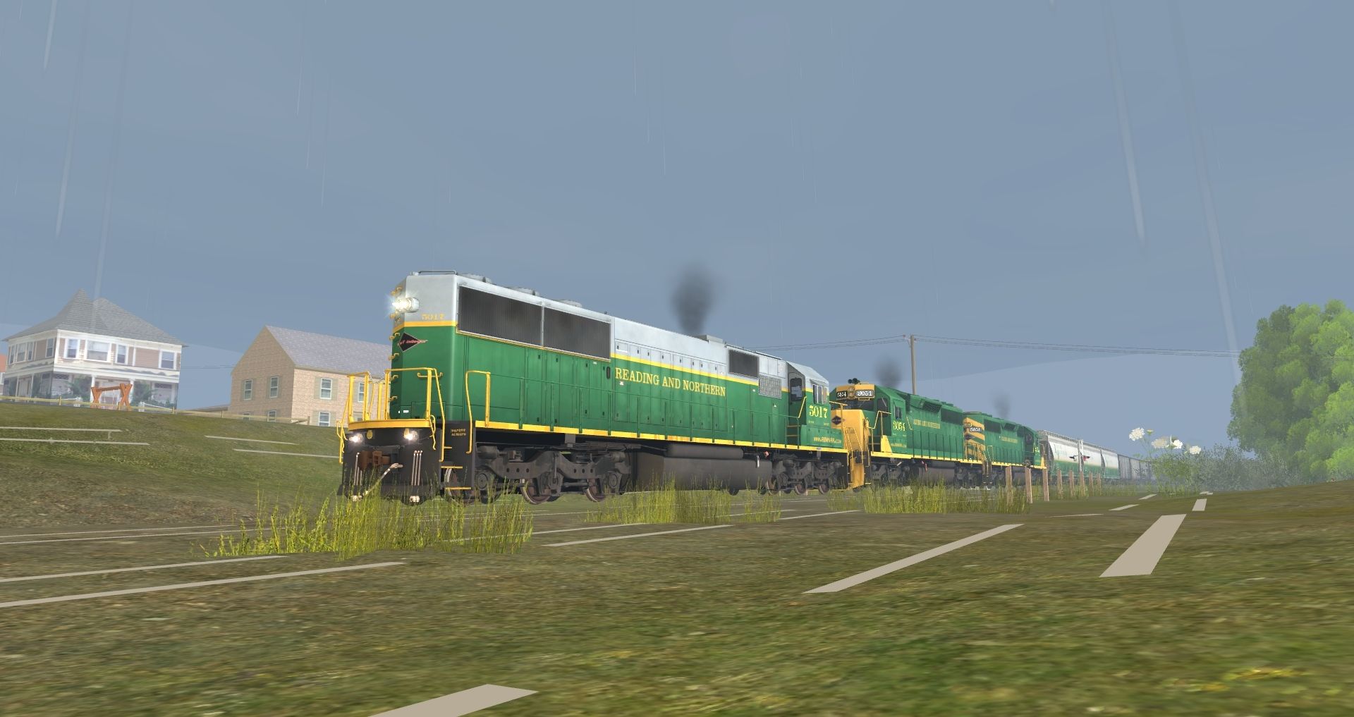Tags: Trainz: A New Era, READING & NORTHERN, Default, RBMN SD50, RBMN SD40-2, RBMN ACF Centerflow 3 Bay, NYC ex-RDG LO 3510, NW 60ft Boxcar PS [Black] (Autoparts), NW 60ft Boxcar PS [Brown] (Autoparts), PPLX 100 Ton Hopper