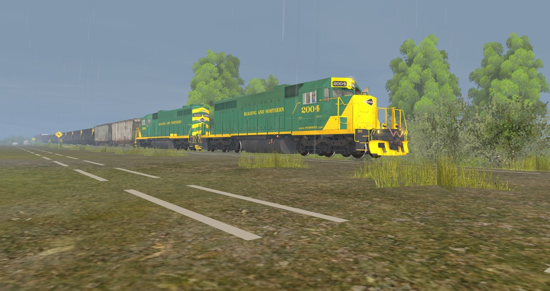 Tags: Trainz: A New Era, READING & NORTHERN, Default, SD38 RBMN #2004, SD38 RBMN #2000, NYC ex-RDG LO 3510, PPLX 100 Ton Hopper, NW 60ft Boxcar PS [Brown] (Autoparts), NW 60ft Boxcar PS [Black] (Autoparts)