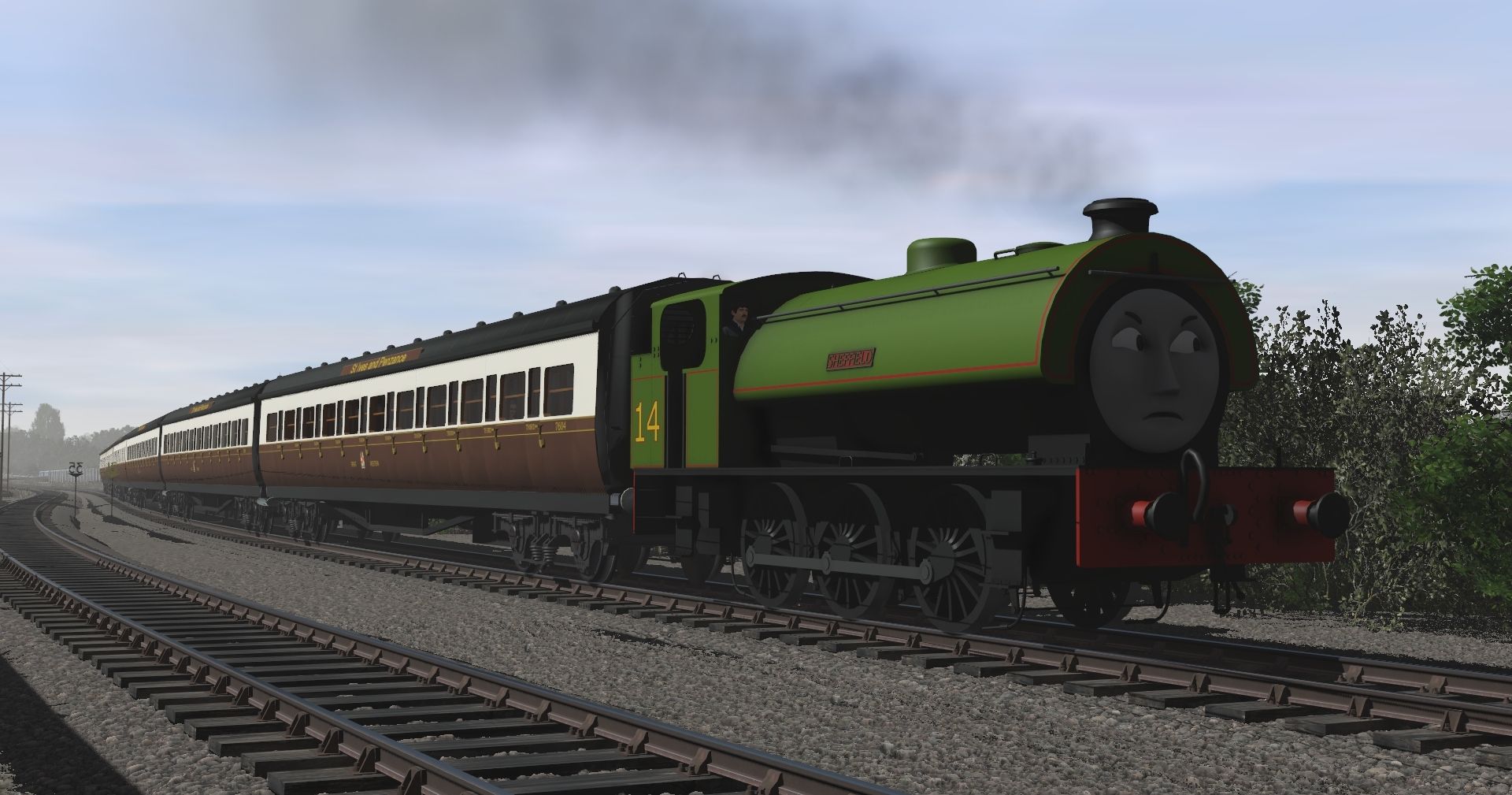 Tags: Trainz Railroad Simulator 2019, Cornish Mainline and Branches - TRS19, Default, Sheffield the Austerity Engine, TSI - Wilbert, GWR 51xx large Prairie, GWR 1922 comp coach St Ives and Penzance lot 1310, GWR 1922 3rd St Ives and Penzance lot 1308, GWR Flour 12 ton Van detailed 36, GWR Flour van 101720 w ACS, GWR Fruit D van w ACS, GWR Fruit D van - late livery w ACS, GWR (F. Bendle) 20T Mineral coal load, GWR 1930 Multivan grey roof TRS2004