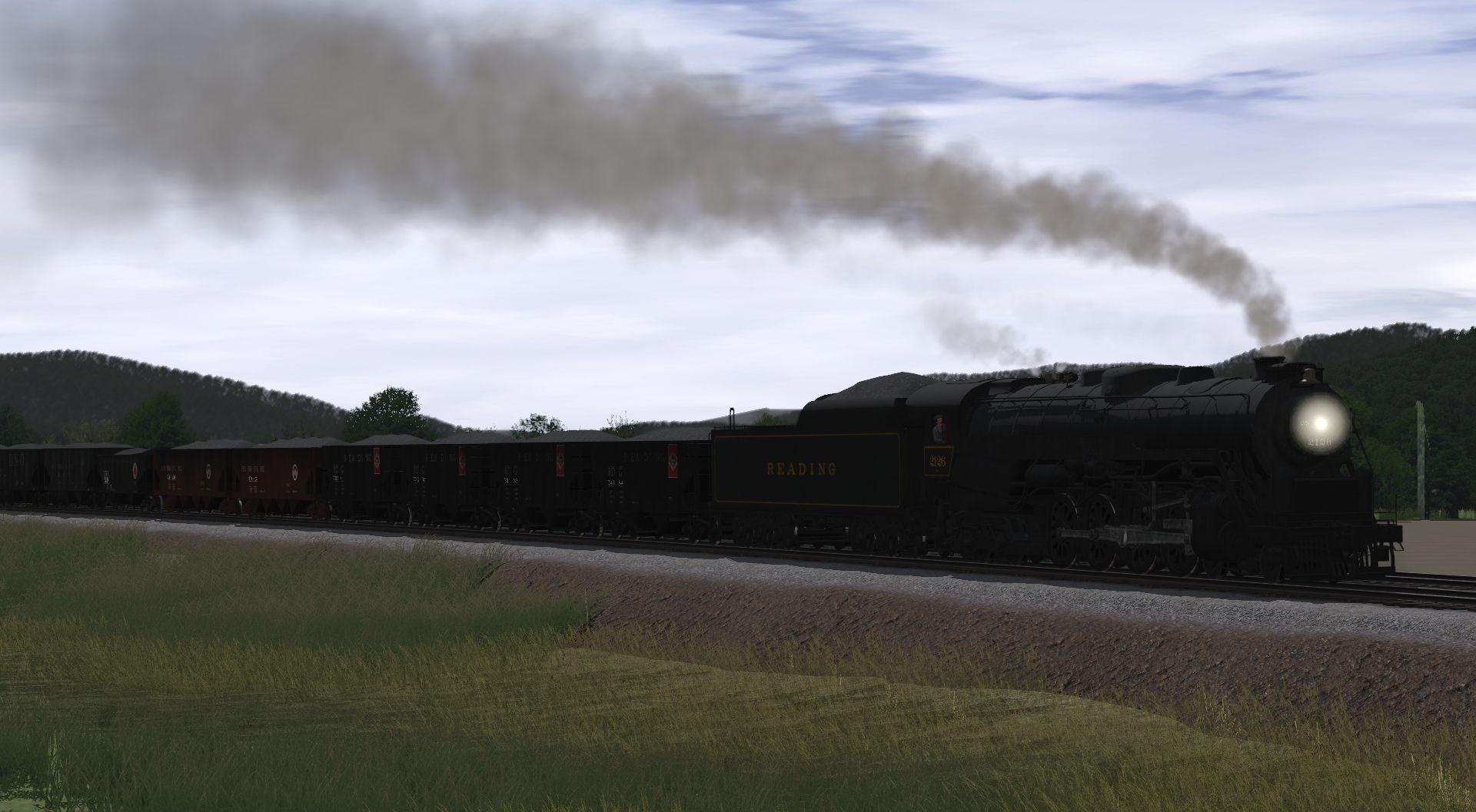 Tags: Trainz Railroad Simulator 2022, Appalachian Right of Way verison 1.0, Default, Flying Cam, Reading T1 Freight Engine, Reading T1 Freight Tender, 2bay hopper A.T.S.F., PS-3 2 Bay CRR, RDG HTj Hopper, 2bay hopper UP Billboard, USRA 55T H C&O, USRA 55T H B&O Mid, USRA 55T H B&O Late, PRR GLa Hopper