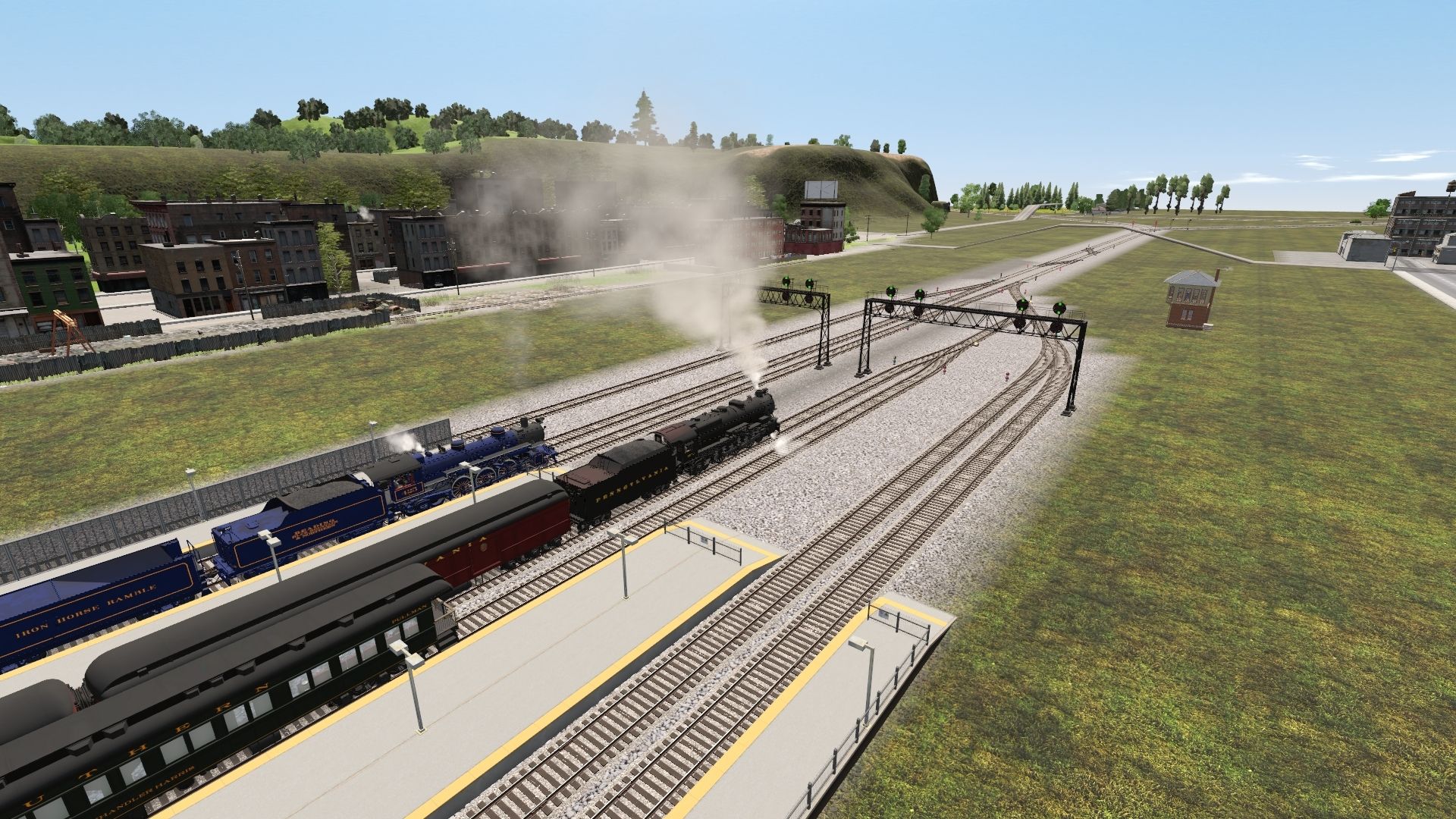 Tags: Trainz Railroad Simulator 2022, Jay's Midland RR, Jay's Midland RR - Default, Central Pacific 61 'Storm, R&N 425 Engine V2, PRR K4s Pacific Engine Postwar, Southern Ps-4 Engine Modernized, RWS Henry (Original Shape - NWR Green), BR Class 87 scrap, Central Pacific 61 Tender, Southern Observation 3-2, PRR BM70NB RPO, Central Pacific Baggage Car, PRR B70 Baggage Postwar