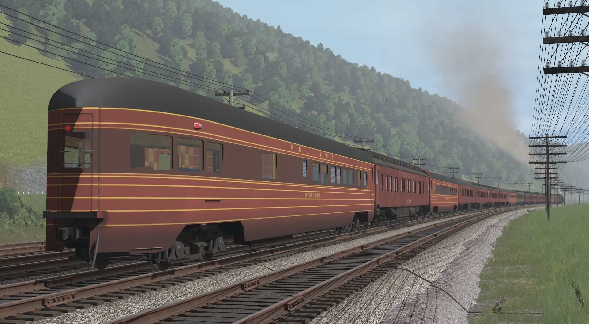 Tags: Trainz Railroad Simulator 2022, Pennsy Lines- Pitts to Philly and More WIP 22e, Default, Flying Cam, PRR K4s Pacific Engine Prewar Futura, PRR FOM POS21A Observation, PRR Pullman 14BR Prewar 2, PRR Pullman 12-1-1 Prewar 2, PRR Pullman 10-1-2 Prewar 2, PRR FOM PS18 Sleeper, Pullman 28-1 Parlor Car - Green, PRR D78 Diner Prewar, PRR P70 Coach Prewar, PRR FOM B70 Baggage