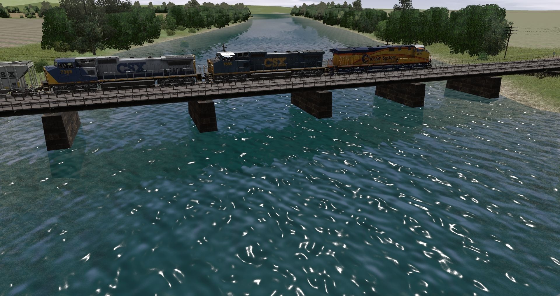 Tags: Trainz Railroad Simulator 2022, Midwestern Rails, Default, CSX C40-8W yn2 (ex-CR), CSX C40-8W yn3, CSX Chessie Heritage ES44DC, CSX 2 bay Trinity hopper clean 1, CSX 2 bay Trinity hopper clean 2, CSX 60' ACF Boxcar, CSX_86ft_hi_cube, CTCX 20800 gal tank car, Custom ACF 3 Bay - Winchester & Western, Custom ACF 3 Bay - W Farms LLC, Custom 23000 gal tank - HK Oil