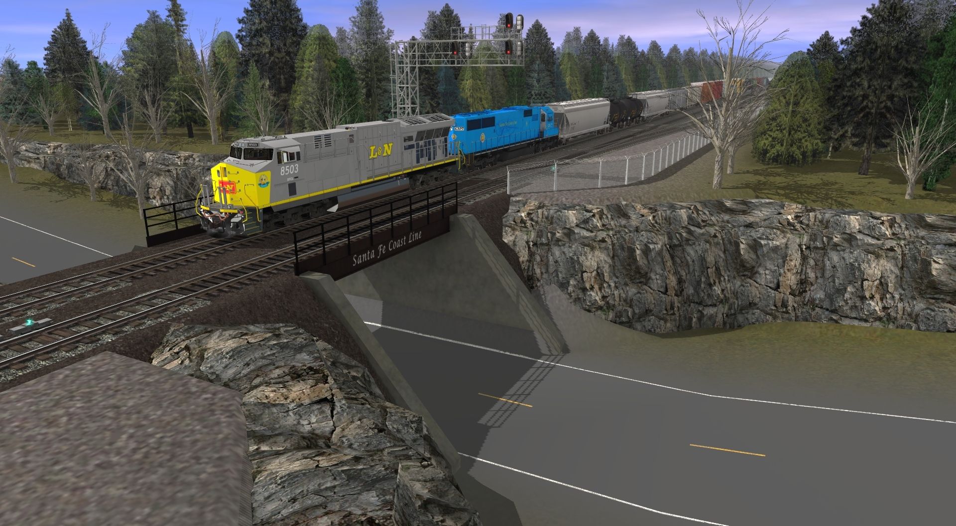 Tags: Trainz: A New Era, Santa Fe Coast Line Maverick Subdivision, SFCL ES44AC T4 L&N Heritage, SFCL SD40E-2, 52ft Gondola SGLR, 52ft Gondola CSXT 3, JRPX ACF Centerflow 4 Bay round hatch, 52ft Gondola GONX 2, JRPX 10000 gal tank car, 52ft Gondola DJJX, 52ft Gondola CSXT 2, 52ft Gondola CR, 52ft Gondola CSXT 1