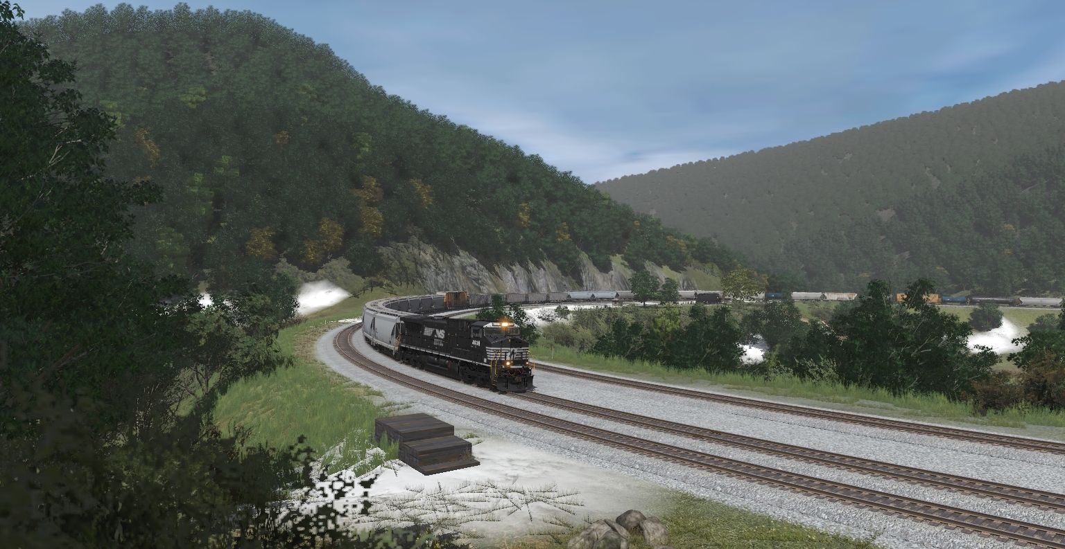 Tags: Trainz Railroad Simulator 2019, NS Horseshoe Curve V0.3, NS AC44C6M early, PRR RS27 Trainphones, NS ES44AC, NS C40-9W, NS SD70ACe ER Heritage 1068, PRR FM flat car, HO5B WFAX 65002-65128 FCA AFIII, GBCX Cylindrical Hopper, 73ft Centerbeam TTX 2, TILX ACF Centerflow 4 Bay long hatch, Evans Covered Hopper MP