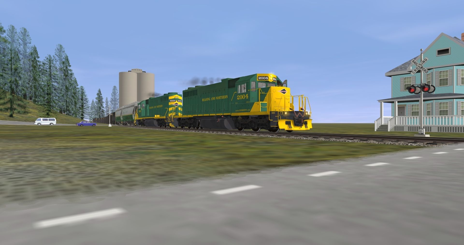 Posted by: Tomr0608 | Posted:2023-02-21 21:11:31 Caption: Tags: Trainz: A New Era, Leesport (Beta), Default, SD38 RBMN #2004, SD38 RBMN #2000, RBMN ACF Centerflow 3 Bay, PPLX 100 Ton Hopper