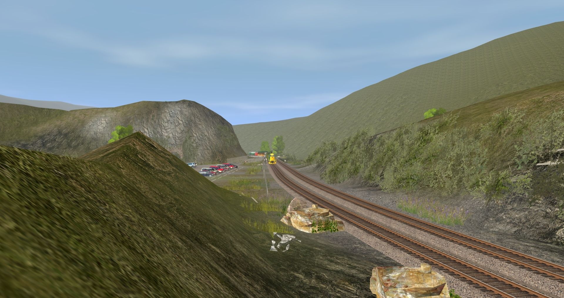 Tags: Trainz: A New Era, READING & NORTHERN, Default, SD38 RBMN #2004, RBMN SD50, Sleeper C&O George Washington, Southern Streamlined Coach, SLRG Budd Dome Scenic View, NS SOU Baywindow Caboose 555761