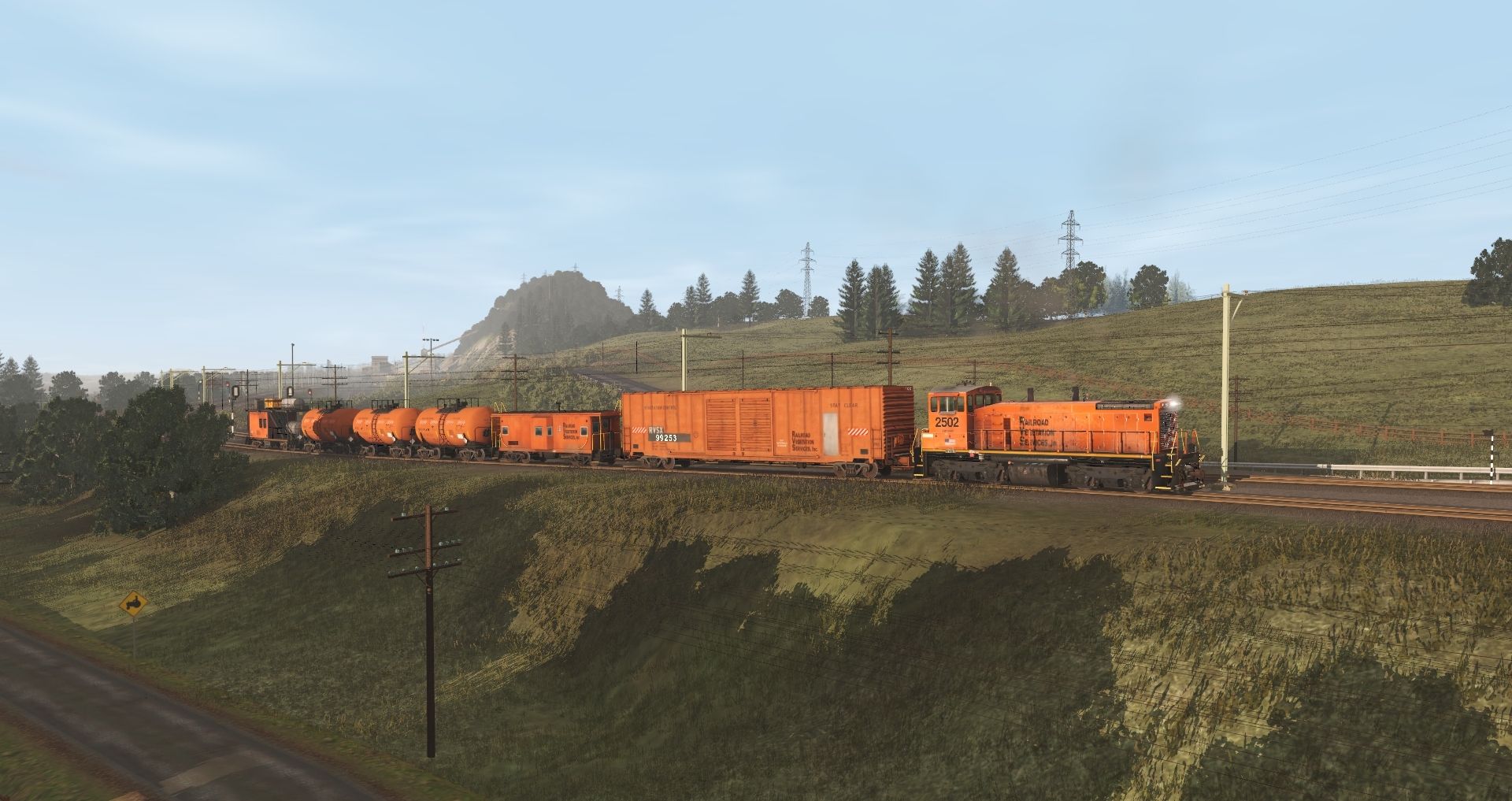 Tags: Trainz Railroad Simulator 2019, !! BC Diamond River Mining : Route, !! BC Diamond River Mining : Session 1, RVSX SW1500, RVSX Tool Car, RVSX Crew Car/Dorm, RVSX Chemical Cars, RVSX Weed Control Car