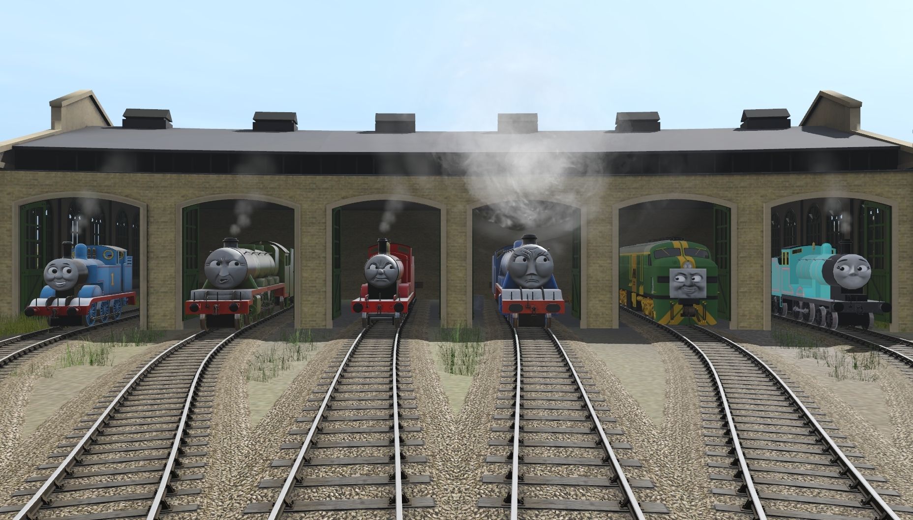 Tags: Trainz Railroad Simulator 2019, 6 Gangstas Release, Default, Flying Cam, TTTE - James the red engine, TTTE - Gordon, Furness Railway K2 (NWR Blue) w/faces, TTTE - Henry, TTTE - Thomas The Tank Engine, Kevin the AN 930 Class, TTTE - James's Tender, Furness Railway K2 Tender (NWR Blue), TTTE - Henry's Tender, TTTE - Gordon's Tender