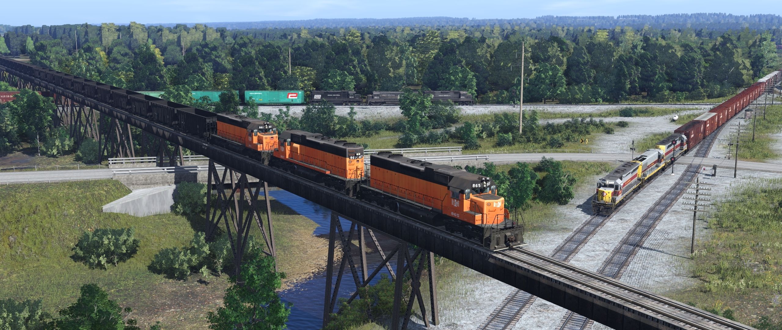 Tags: Trainz Railroad Simulator 2022, EL Mahoning Divison 2-21-23 Jon, Default, BLE 1973 SD38AC 865, BLE 1973 SD38AC 867, BLE 1973 SD38 861, EL SD45, EL U25B late 2513-2527, EL SD45M, PC SD35, PC ex-NH U25B ph4, PC GP38-2, EL 60' Greenville Boxcar, BLE 100 Ton Hopper
