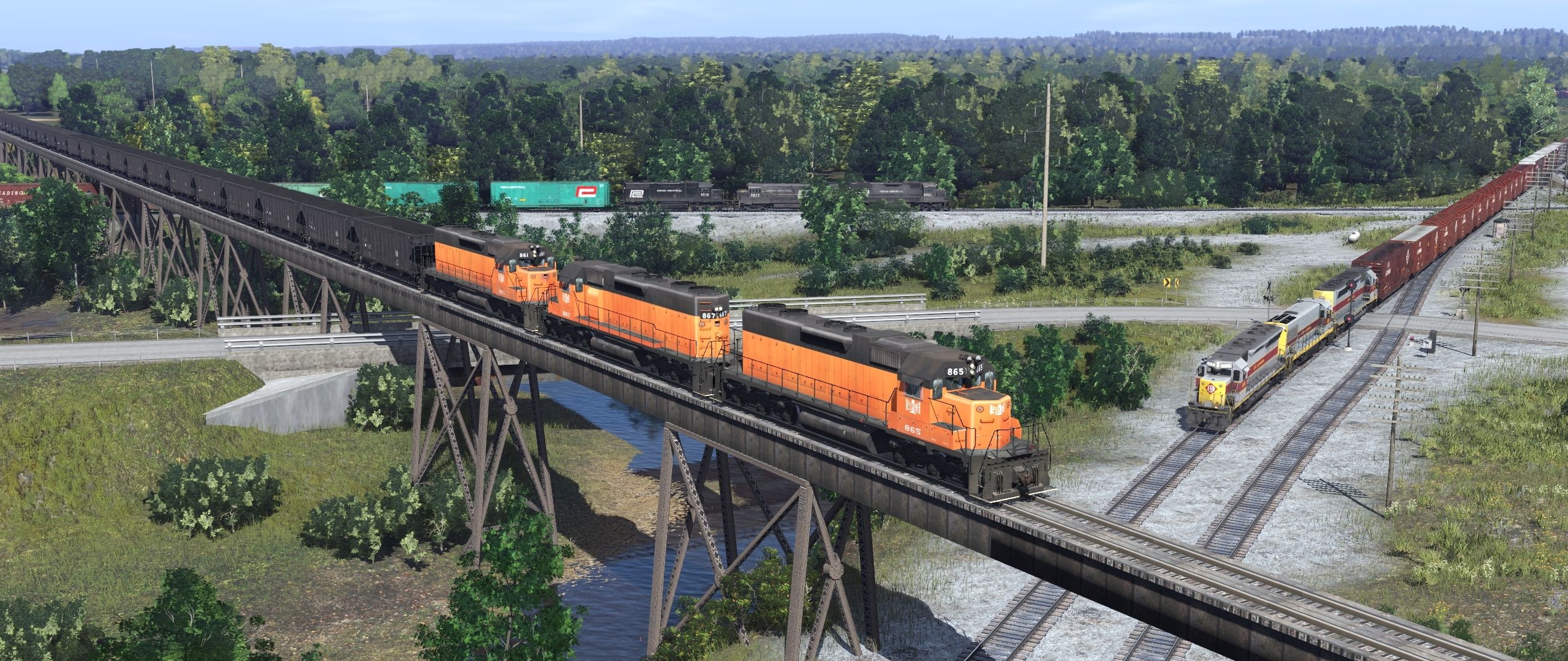 Tags: Trainz Railroad Simulator 2022, EL Mahoning Divison 2-21-23 Jon, Default, BLE 1973 SD38AC 865, BLE 1973 SD38AC 867, BLE 1973 SD38 861, EL SD45, EL U25B late 2513-2527, EL SD45M, PC SD35, PC ex-NH U25B ph4, PC GP38-2, EL 60' Greenville Boxcar, BLE 100 Ton Hopper