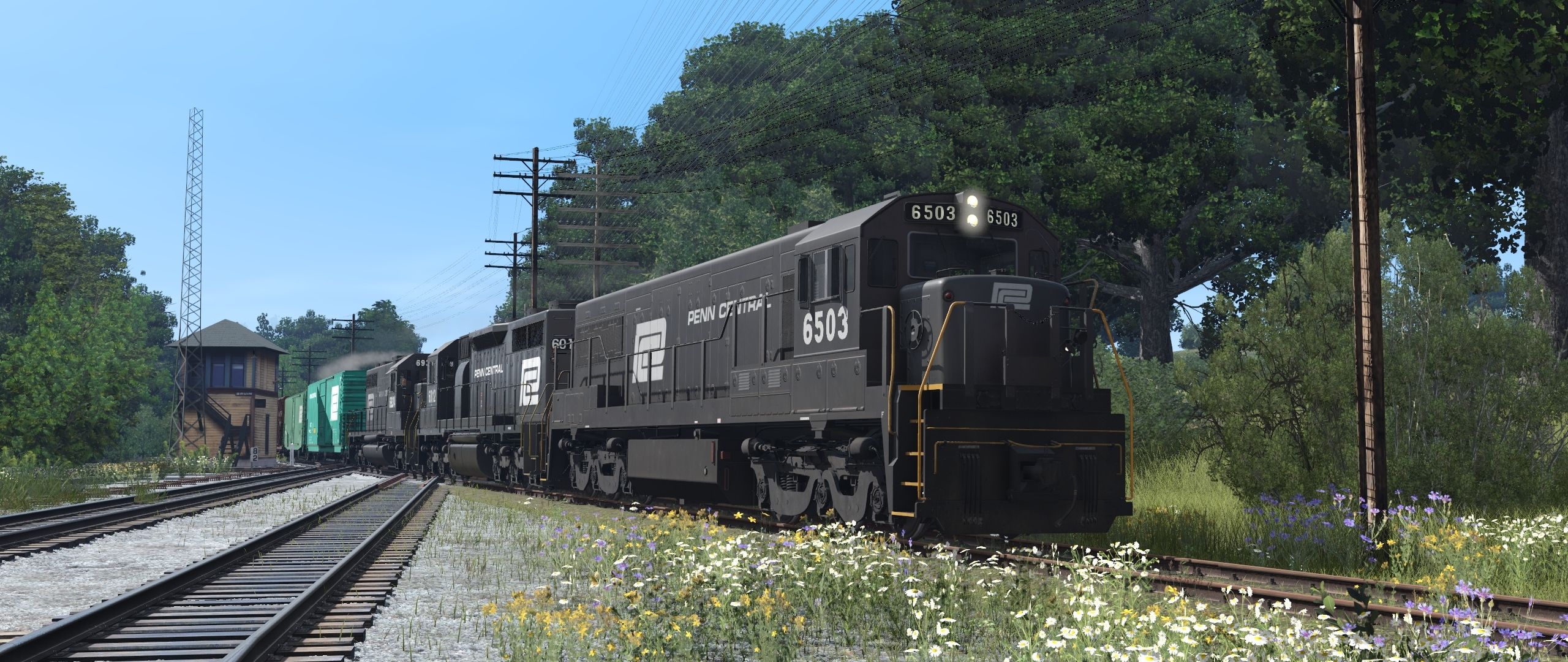 Tags: Trainz Railroad Simulator 2022, EL Mahoning Divison 2-21-23 Jon, Default, PC ex-PRR U25C ph3a, PC SD35, PC SD38, PC 60' X61/X61C Boxcar, PC 50' PS-1, SP 50ft Boxcar FMC, RDG 60' ACF Boxcar DD XAPc, UP PC&F 6033, PC X67 Autoparts Boxcar, PC 89ft Tri-Level Partially Enclosed TTKX (CR Condition)#, PC 89ft Bi-level Open TTBX #