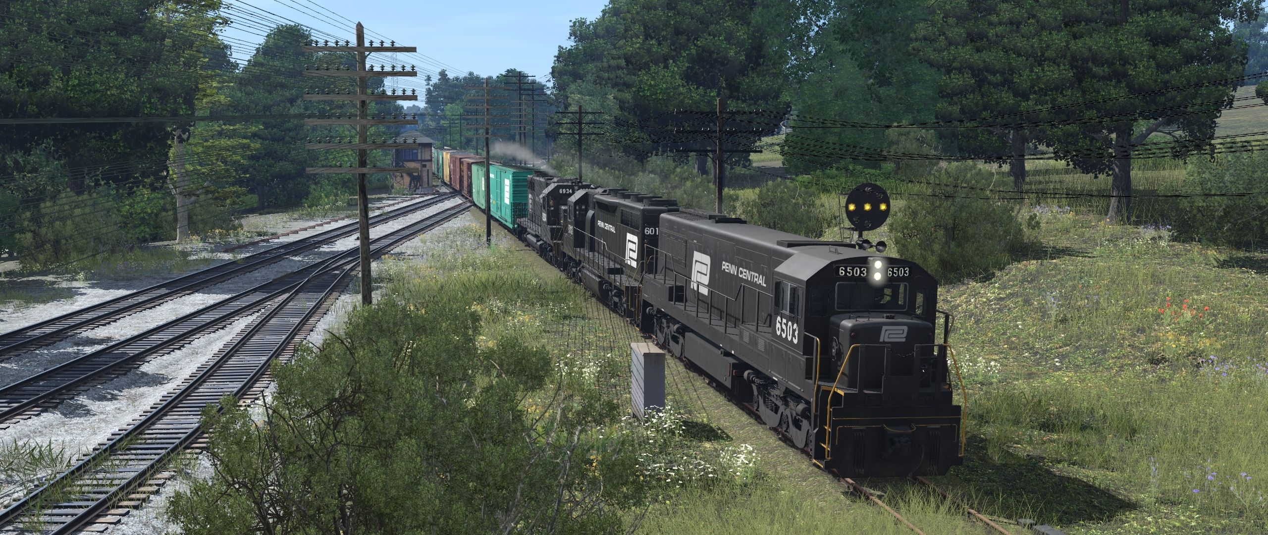 Tags: Trainz Railroad Simulator 2022, EL Mahoning Divison 2-21-23 Jon, Default, PC ex-PRR U25C ph3a, PC SD35, PC SD38, PC 60' X61/X61C Boxcar, PC 50' PS-1, SP 50ft Boxcar FMC, RDG 60' ACF Boxcar DD XAPc, UP PC&F 6033, PC X67 Autoparts Boxcar, PC 89ft Tri-Level Partially Enclosed TTKX (CR Condition)#, PC 89ft Bi-level Open TTBX #