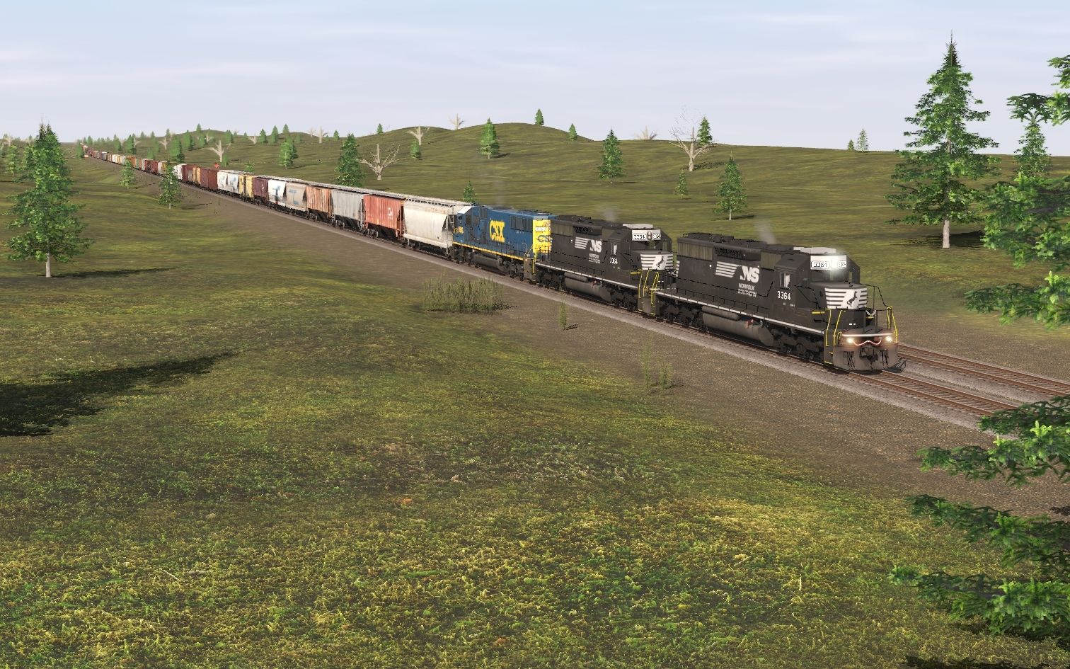 Tags: Trainz Railroad Simulator 2019, Bradfield Speedway, NS SD40-2 3364 ptc, CSX SD50 (YN3), ACFX #97421 3 Bay ACF, CC 476115 LO 4750 3 Bay Covered Hopper, CC 482104 LO 4750 3 Bay Covered Hopper, CC 766167 LO 4750 3 Bay Covered Hopper, ACFX #27710 3 Bay ACF, ACFX #45807 4 Bay ACF, CC 766630 LO 4750 3 Bay Covered Hopper, RBOX 50' ACF Boxcar 4, CCLX #51025 4 bay ACF