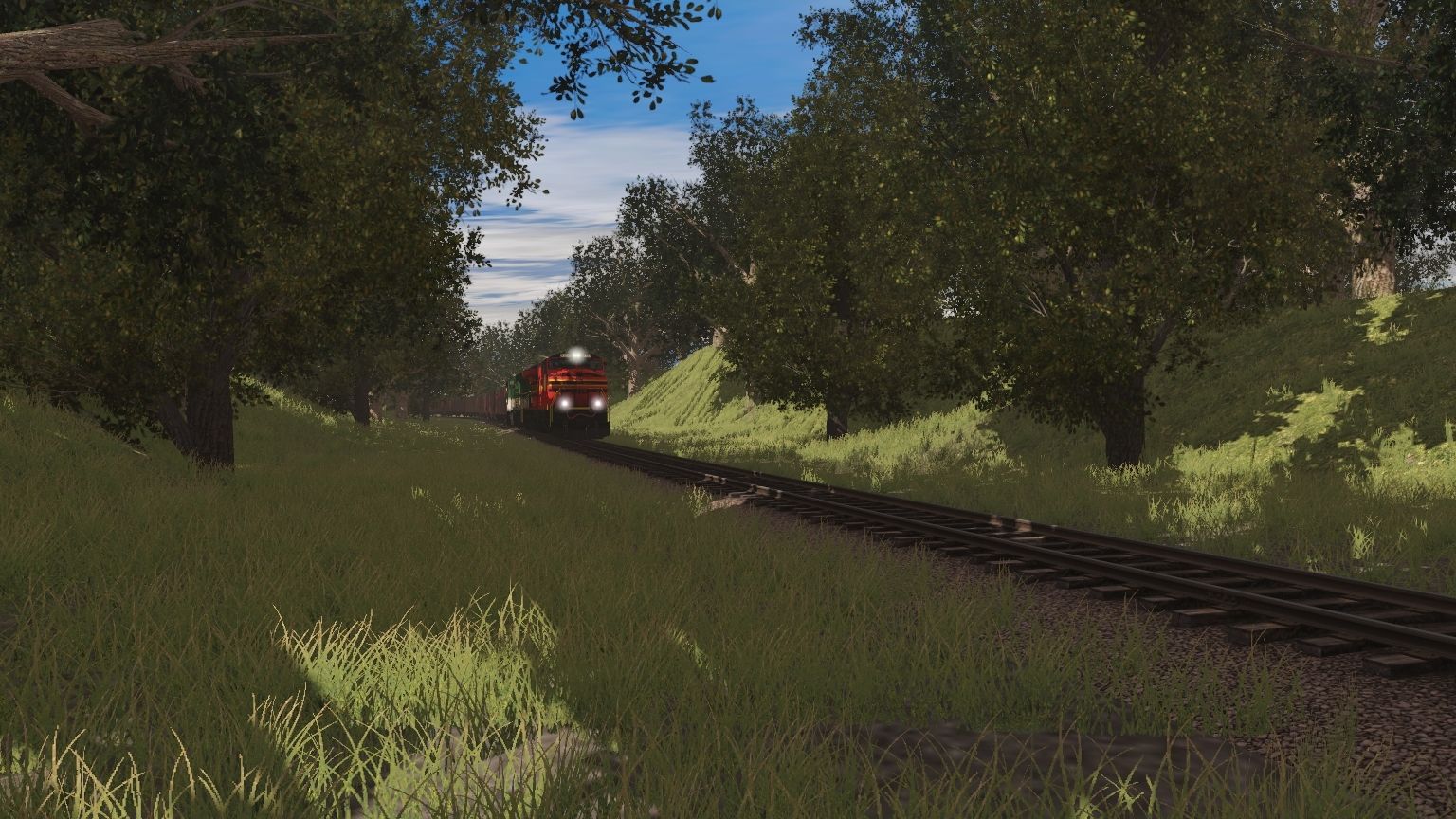 Tags: Trainz Railroad Simulator 2019, Aragon & Southern, NS ES44AC NS Heritage 8114, NS ES44AC SOU Heritage 8099, N&W NS Powhatan Arrow 07 P4 Observation Lounge 581, NS 29 Powhatan Arrow, NS 28 Powhatan Arrow, N&W NS Powhatan Arrow 01 P1 Locker Car 502, N&W NS Powhatan Arrow 02 P2 Divided Coach 511, N&W NS Powhatan Arrow 03 P3 Standard Coach 535, N&W NS Powhatan Arrow 04 P3 Standard Coach 537, N&W NS Powhatan Arrow 05 P3 Standard Coach 538, N&W NS Powhatan Arrow 06 D1 Diner 492