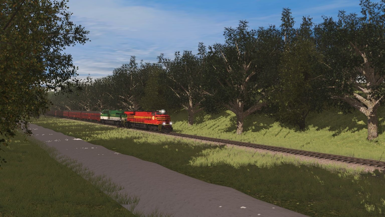 Tags: Trainz Railroad Simulator 2019, Aragon & Southern, NS ES44AC NS Heritage 8114, NS ES44AC SOU Heritage 8099, N&W NS Powhatan Arrow 07 P4 Observation Lounge 581, NS 29 Powhatan Arrow, NS 28 Powhatan Arrow, N&W NS Powhatan Arrow 01 P1 Locker Car 502, N&W NS Powhatan Arrow 02 P2 Divided Coach 511, N&W NS Powhatan Arrow 03 P3 Standard Coach 535, N&W NS Powhatan Arrow 04 P3 Standard Coach 537, N&W NS Powhatan Arrow 05 P3 Standard Coach 538, N&W NS Powhatan Arrow 06 D1 Diner 492