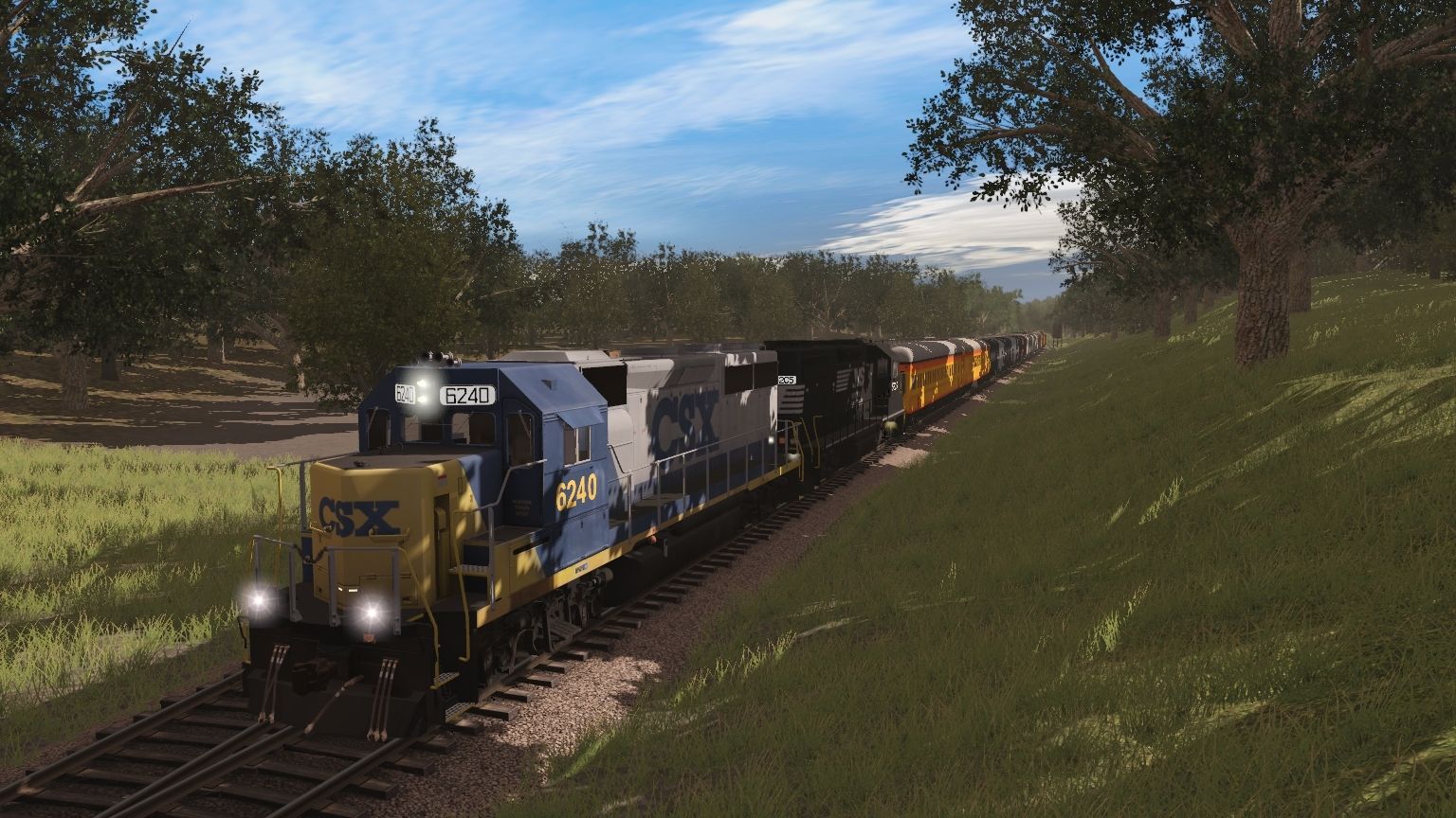 Tags: Trainz Railroad Simulator 2019, Aragon & Southern, CSX GP40-2 YN2, NS GP38-2, NS ES44AC SOU Heritage 8099, NS ES44AC NS Heritage 8114, N&W Tool Car #9647, Chessie Safety Express 08 Observation, N&W NS Powhatan Arrow 06 D1 Diner 492, , Meme Boxcar 3, Chessie Safety Express 04 Coach Roundtop, N&W NS Powhatan Arrow 05 P3 Standard Coach 538