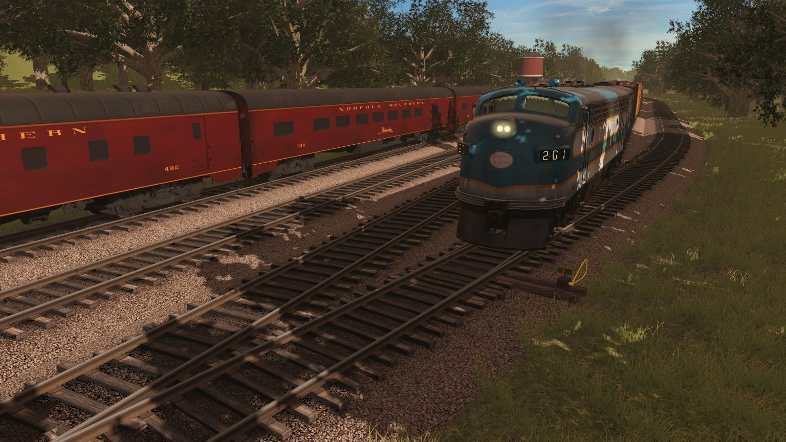 Tags: Trainz Railroad Simulator 2019, Aragon & Southern, A&R F3A #201 Modified, A&R F3A #200 Modified, NKP Mikado Engine V2, NS ES44AC SOU Heritage 8099, NS ES44AC NS Heritage 8114, A&S Baldwin S12 #22, A&S 0-6-0T Engine, A&S 31 Engine, A&S Plymouth 7, N&W NS Powhatan Arrow 06 D1 Diner 492, N&W Tool Car #9647